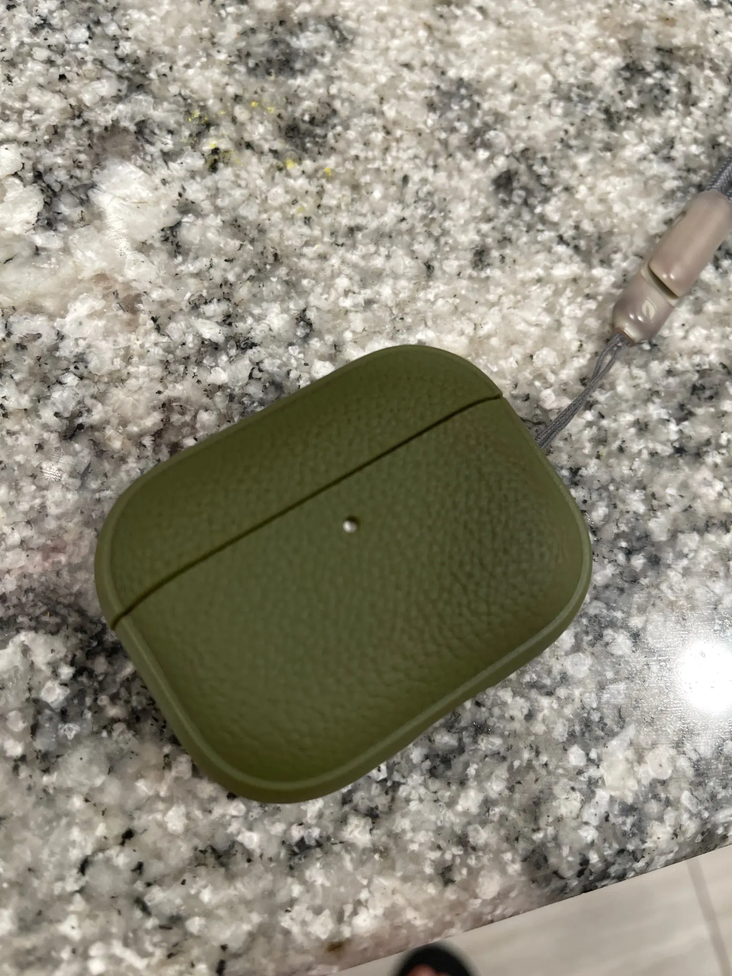 This is a wireless bluetooth headphone case for Apple airpods earphone, it is tpu material, not a leather material, it just leather grain.
