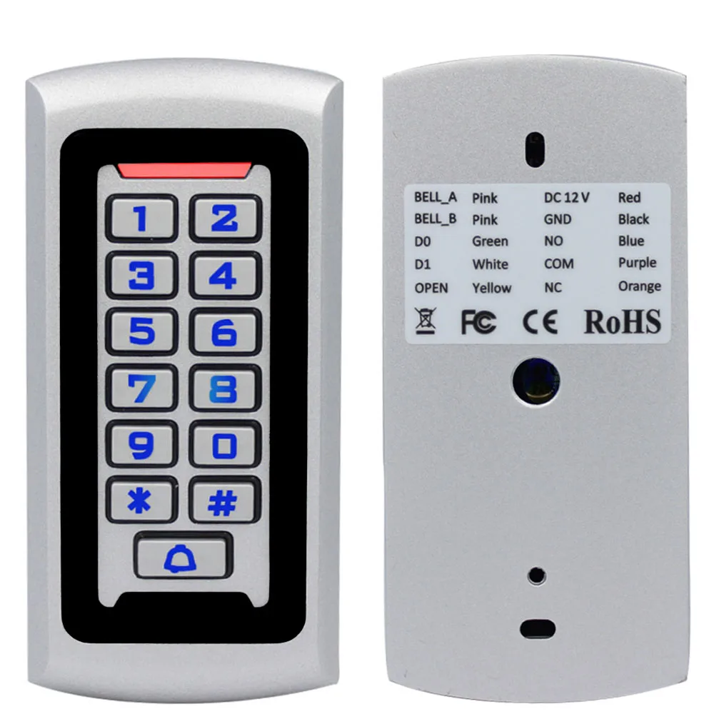 LED Backlight Metal Keypad Wiegand RFID Card Reader 125khz Access Control System Proximity Card Standalone 2000 Users Door Lock