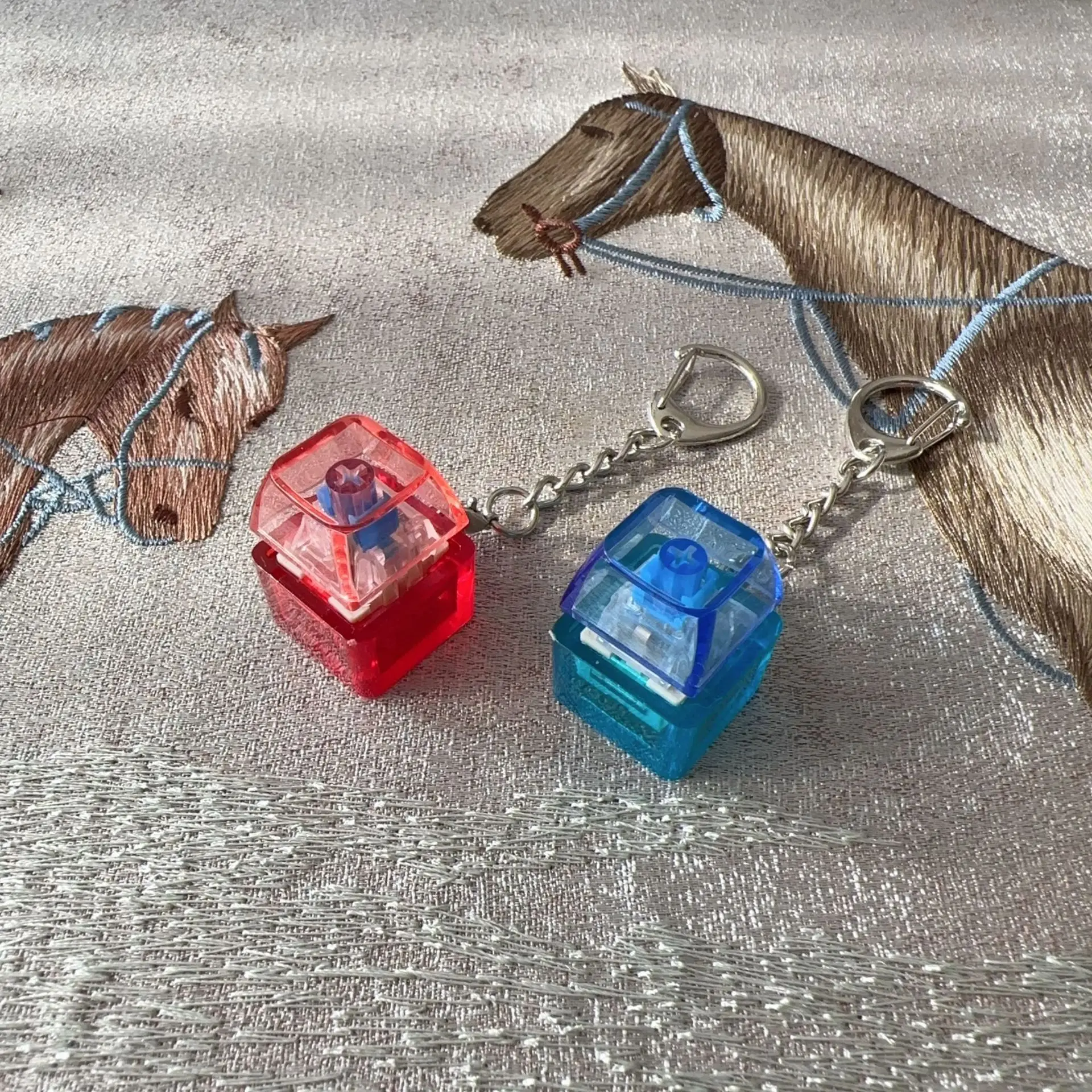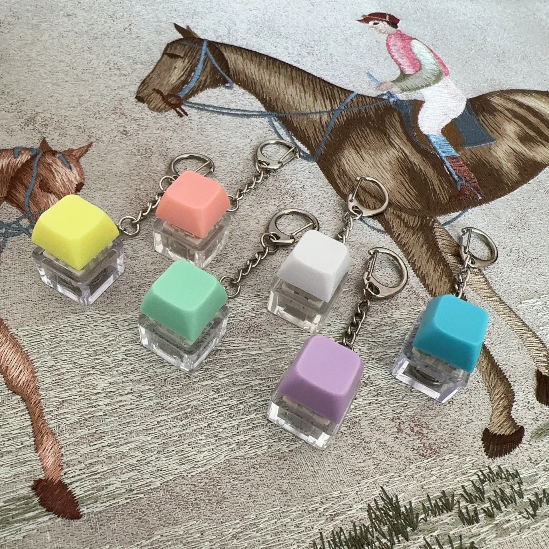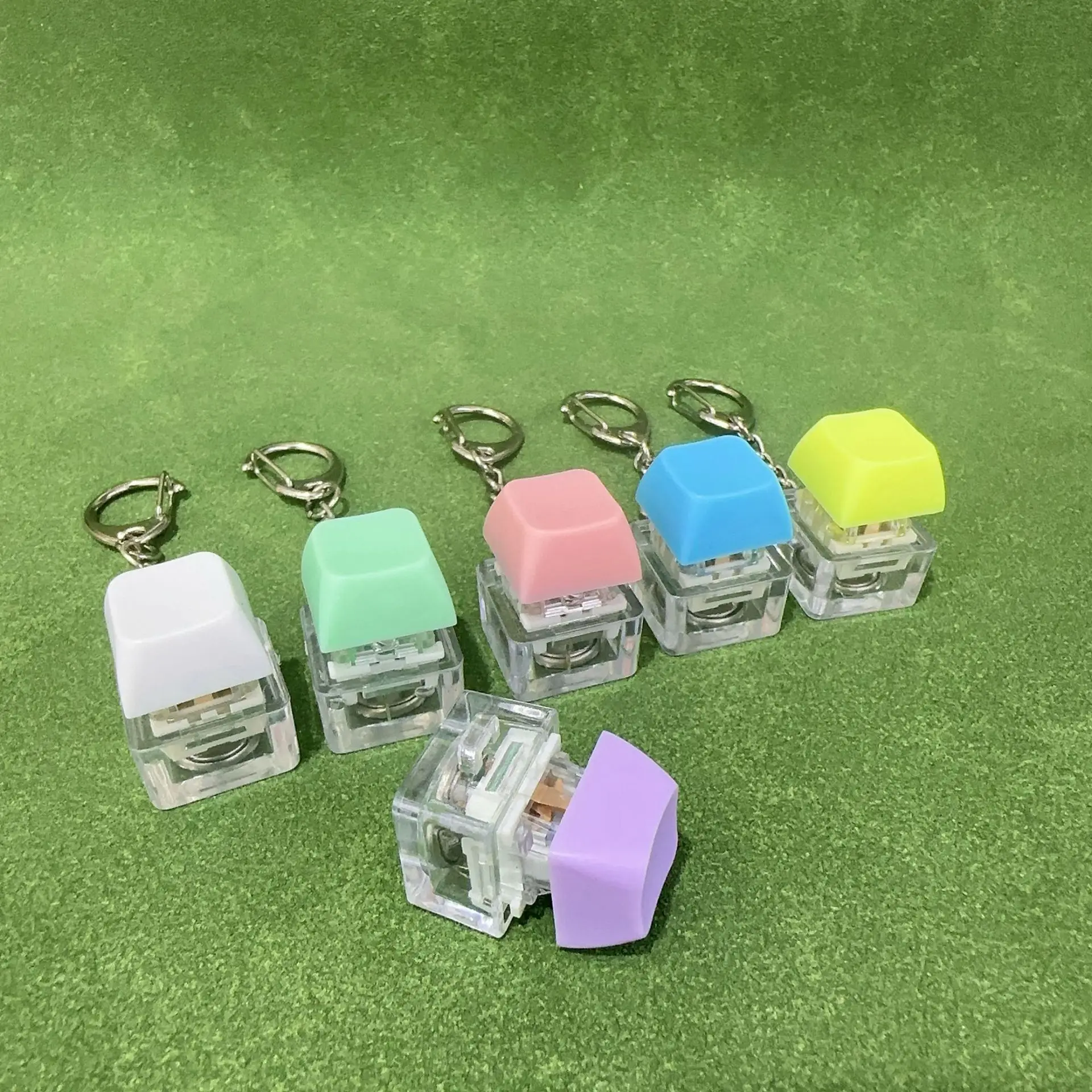 LED Keyboard Keychain Mechanical Button Fidget Key Switch Caps Finger Toys Relief Stress Small Gifts Car Key Ring For Adults