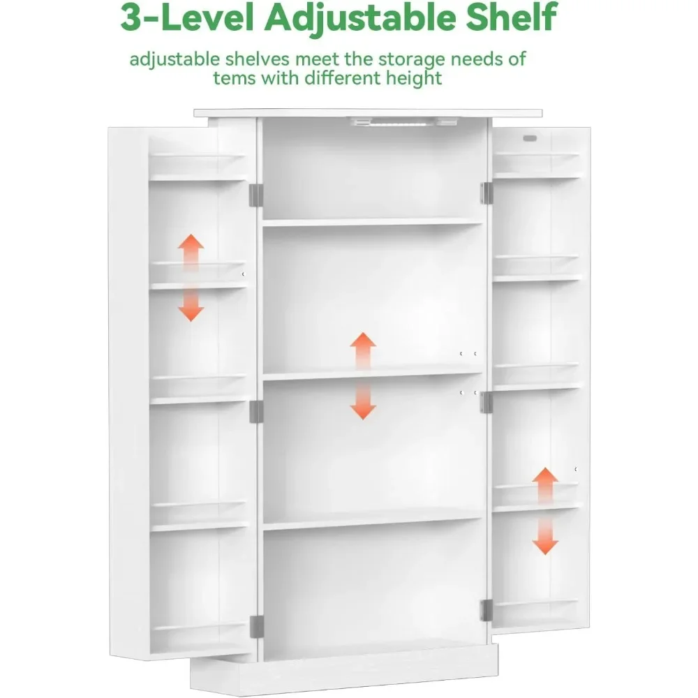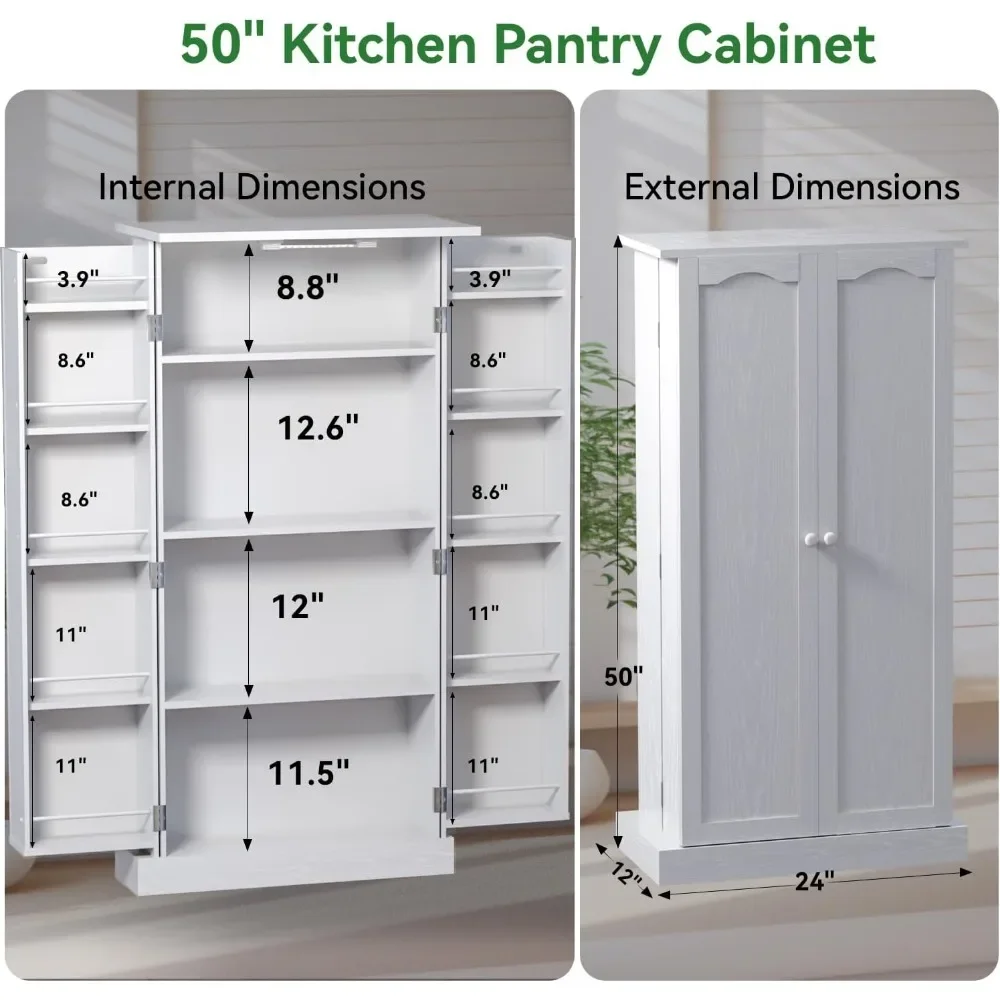 - ✔️【Intelligent LED Light】 kitchen pantry is equipped with an intelligent LED light that comes on immediately when the door is opened and goes off when the door is closed, with a battery life of up to 180 days.