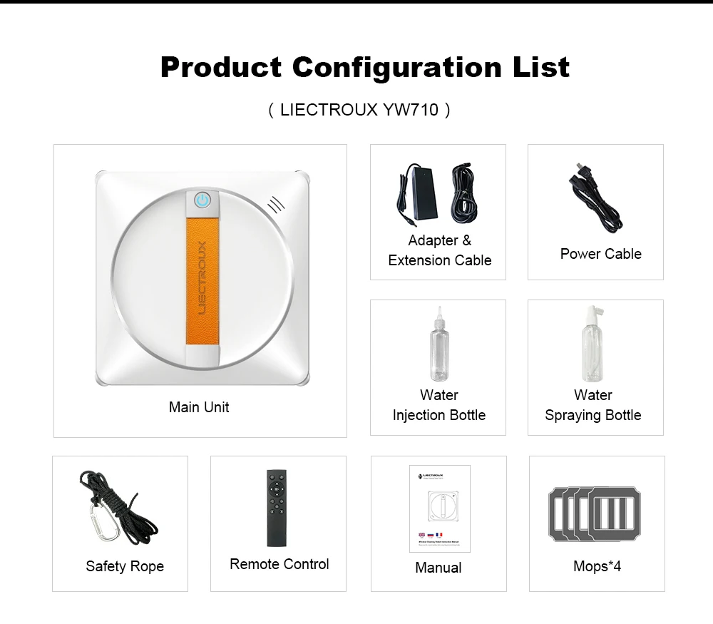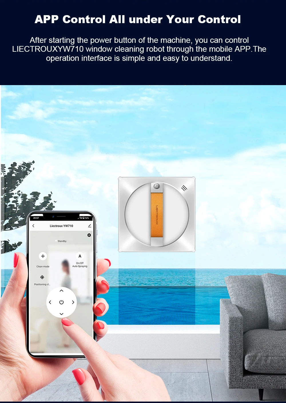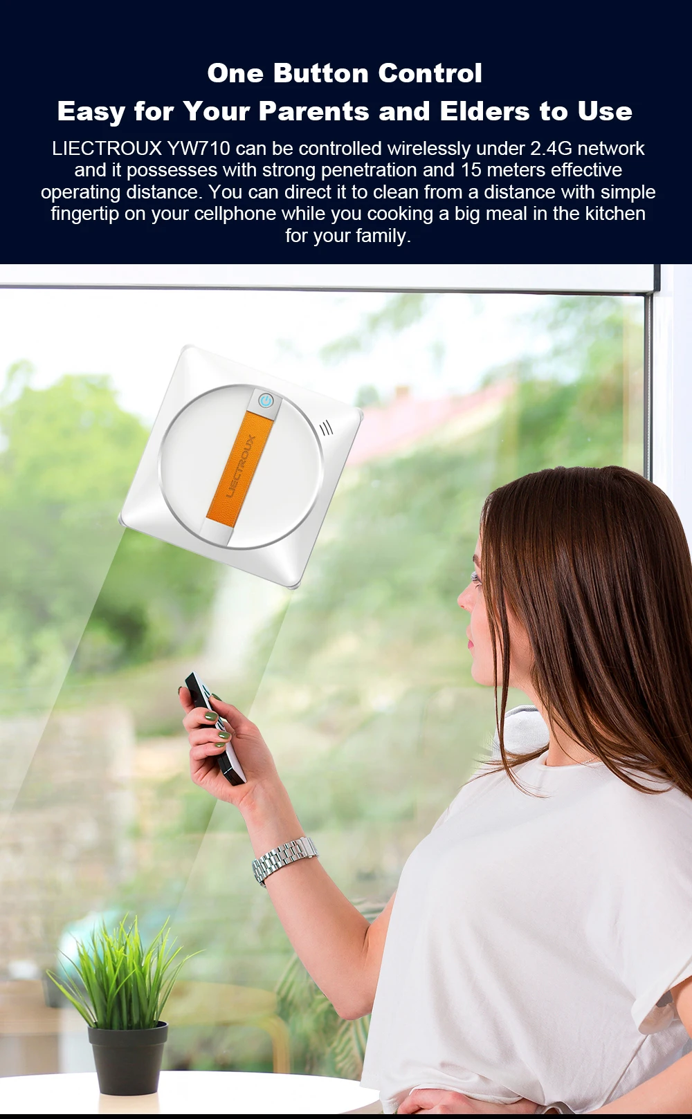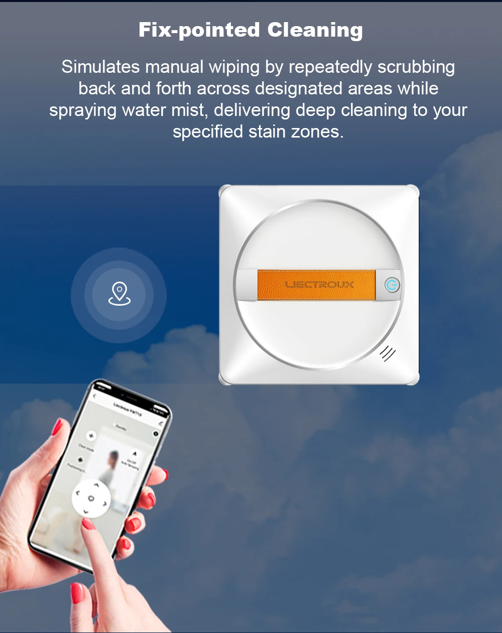 Liectroux YW710 Robot Window Cleaner Laser Sensor,Double Water Spray,Strong Vacuum,Home Wall Glass Cleaning Robot,App Control