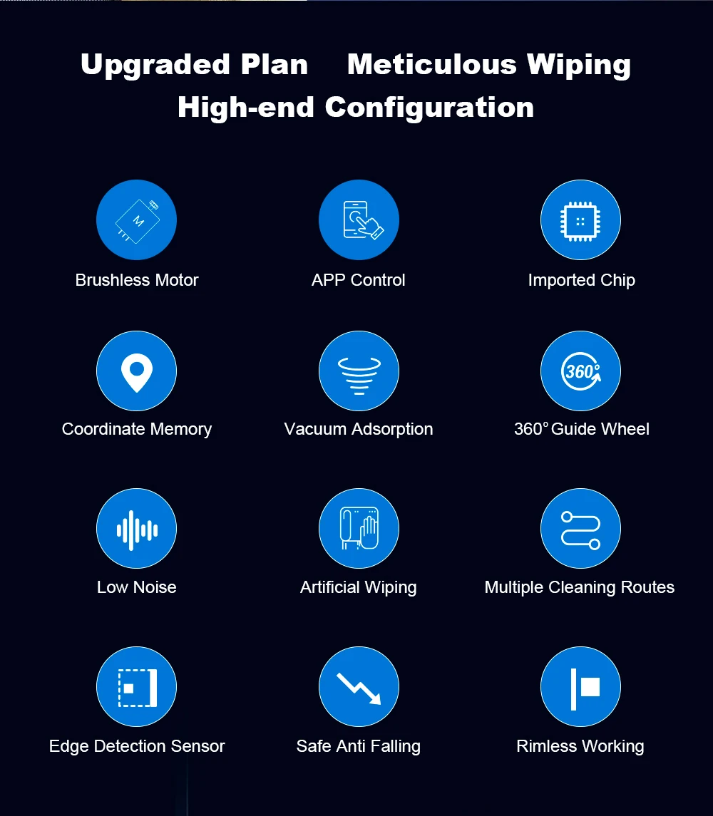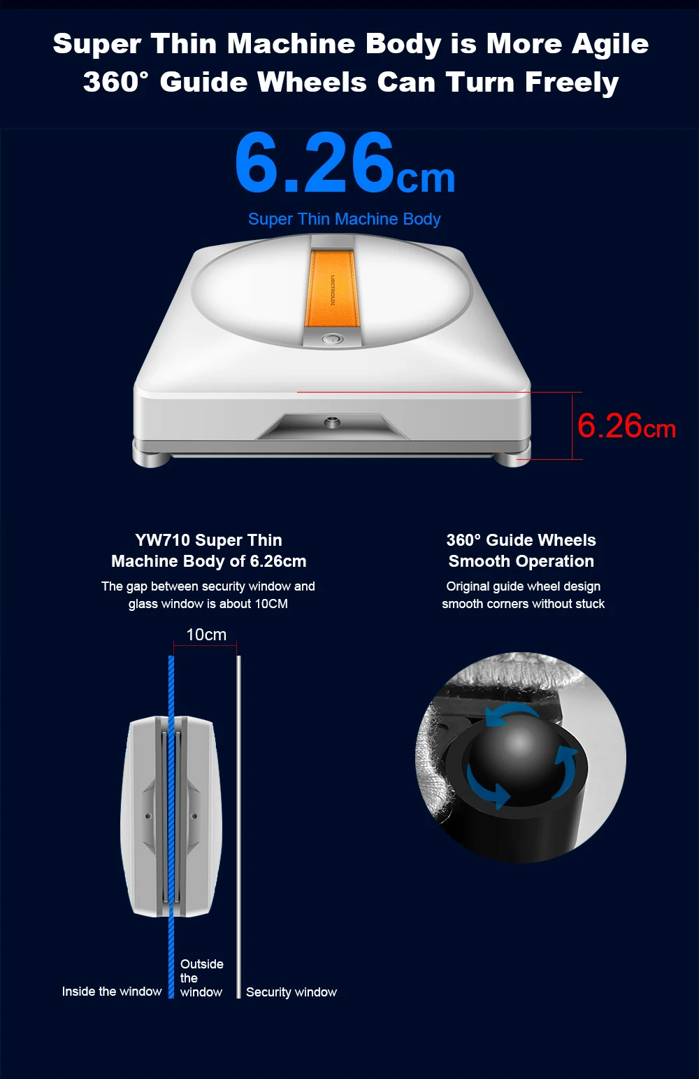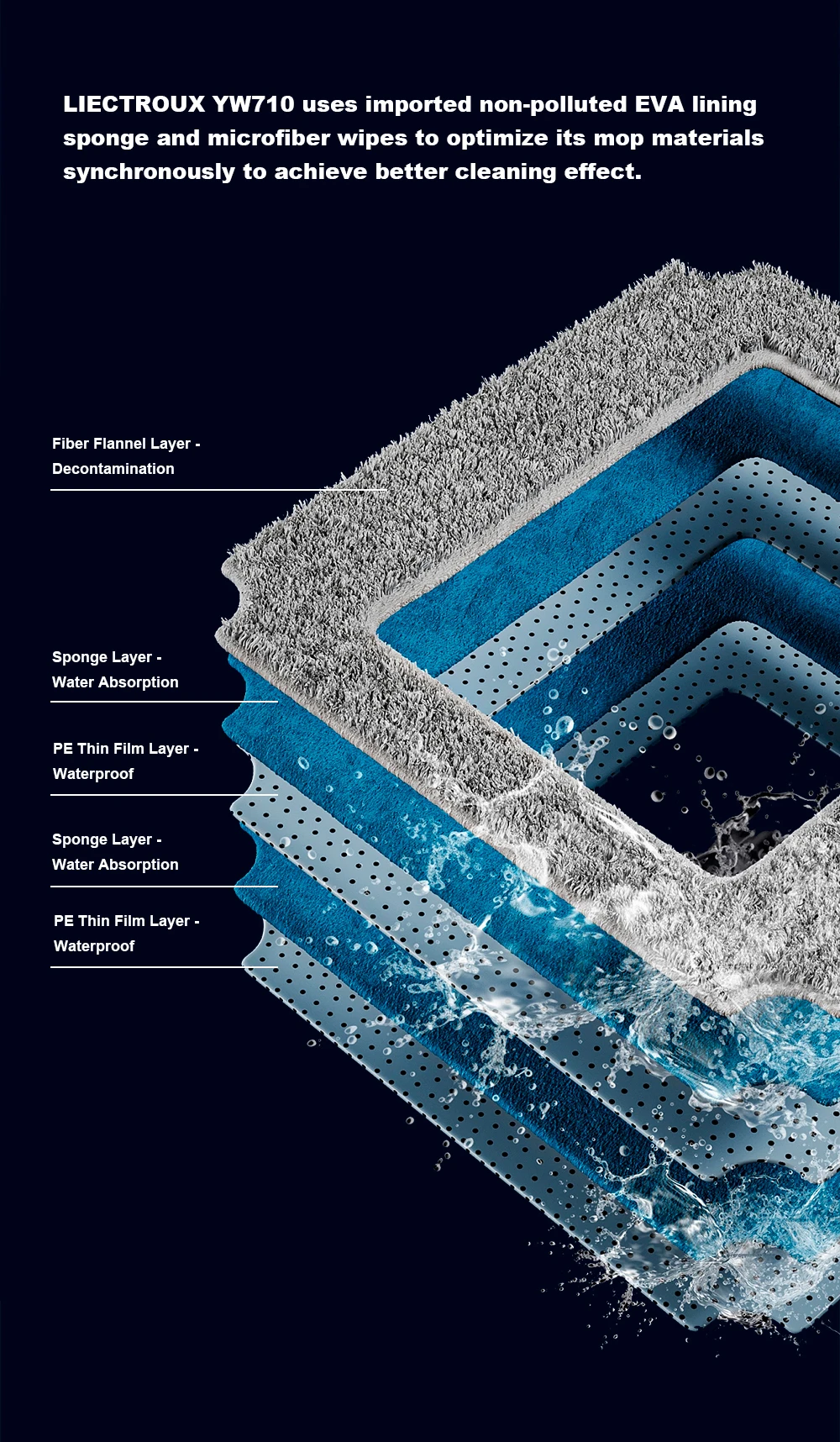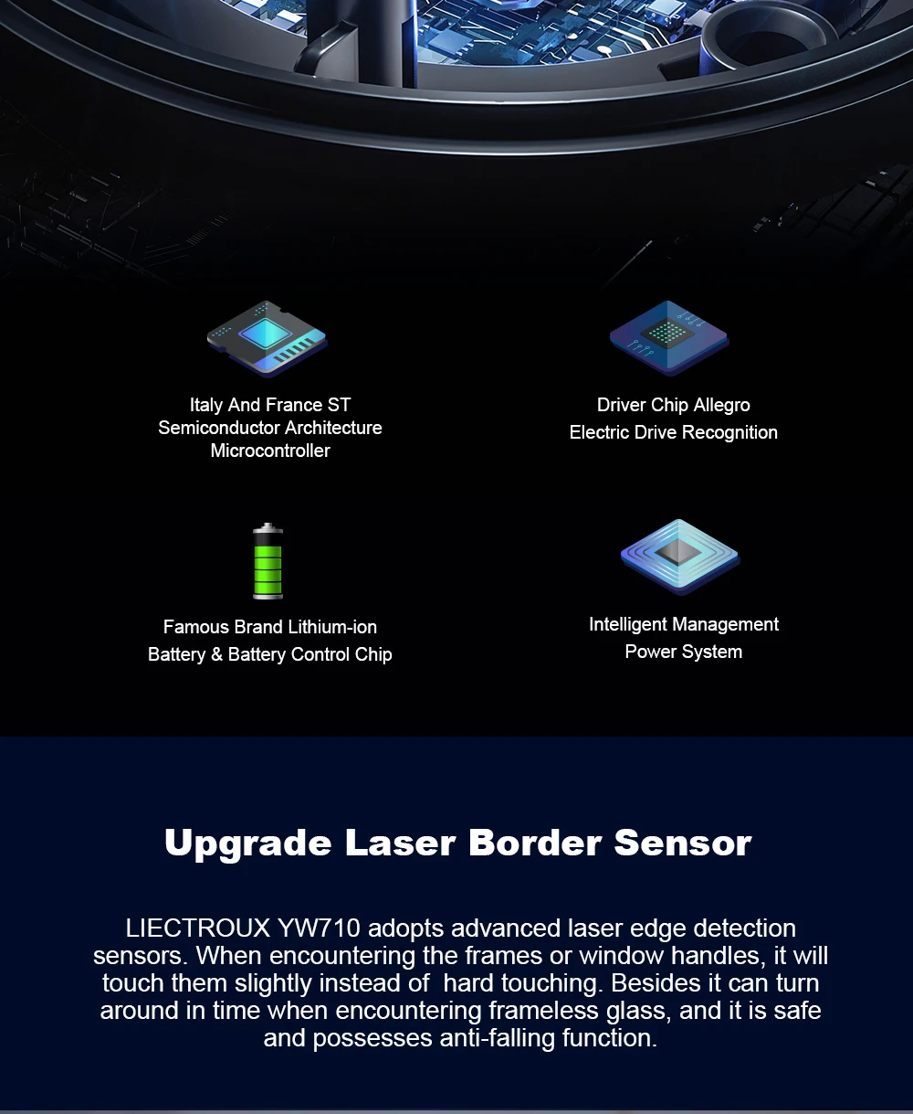 Liectroux YW710 Robot Window Cleaner Laser Sensor,Double Water Spray,Strong Vacuum,Home Wall Glass Cleaning Robot,App Control
