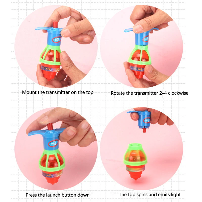 When you launch the top toy on the flat surface, you can see it emits red light, we recommend that you use it in a dark environment, it will make your child feel more interesting!