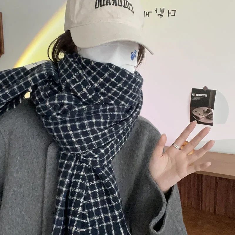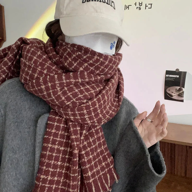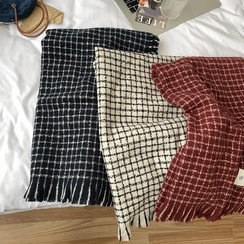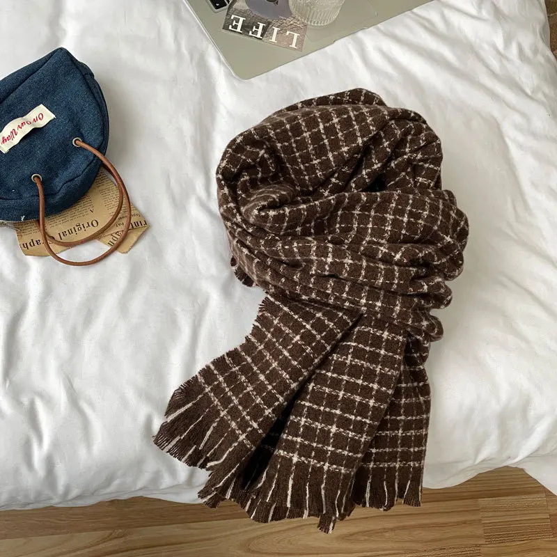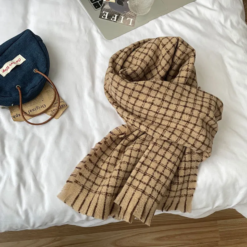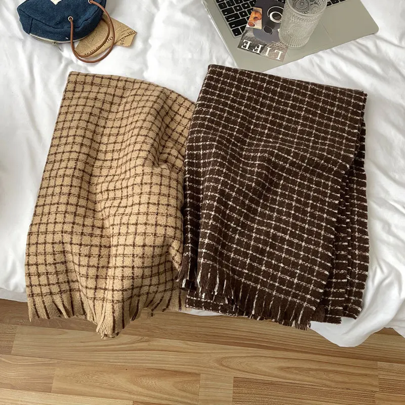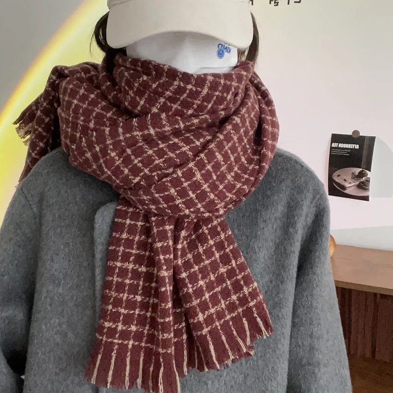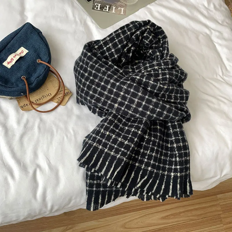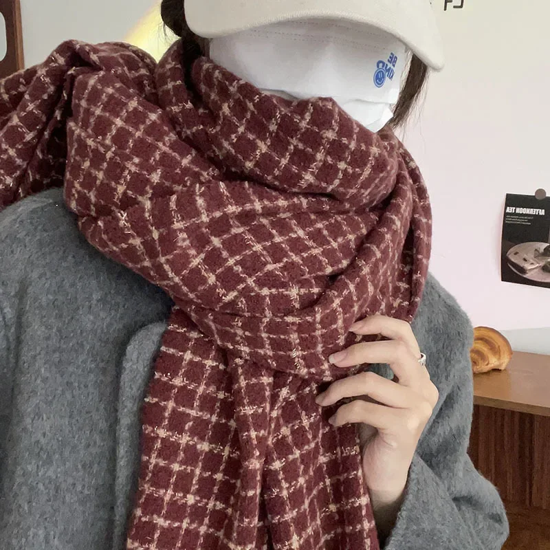 Literary Retro High-quality Plaid Scarf, Women's Warmth, Autumn and Winter Scarf, Shawl, Dual-purpose Couple