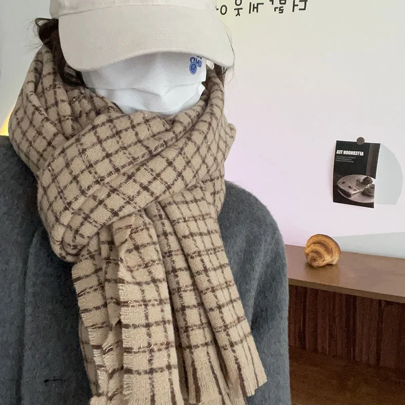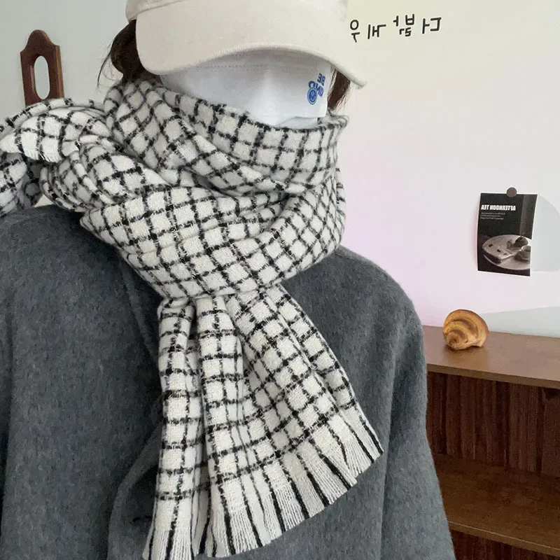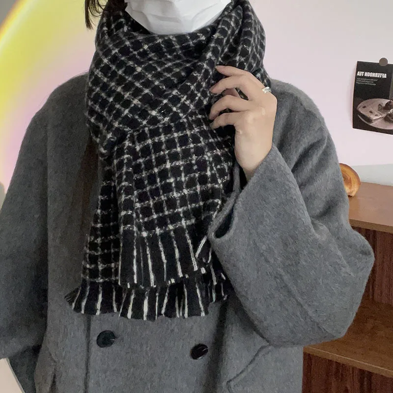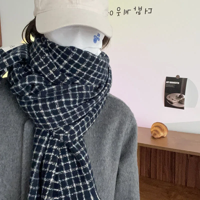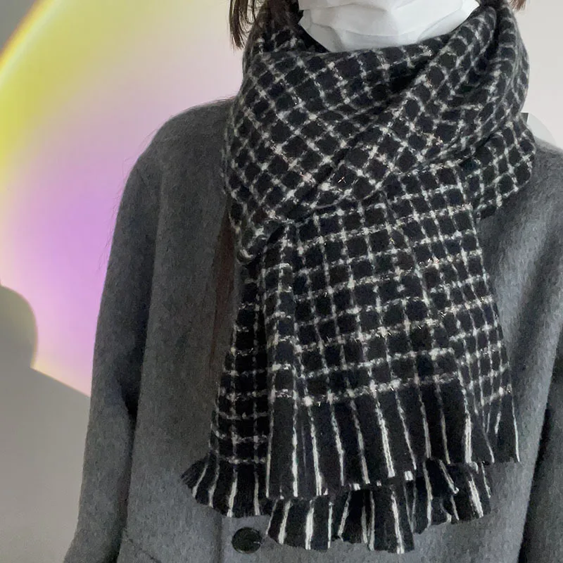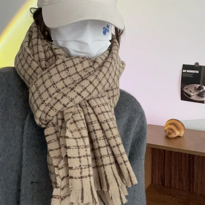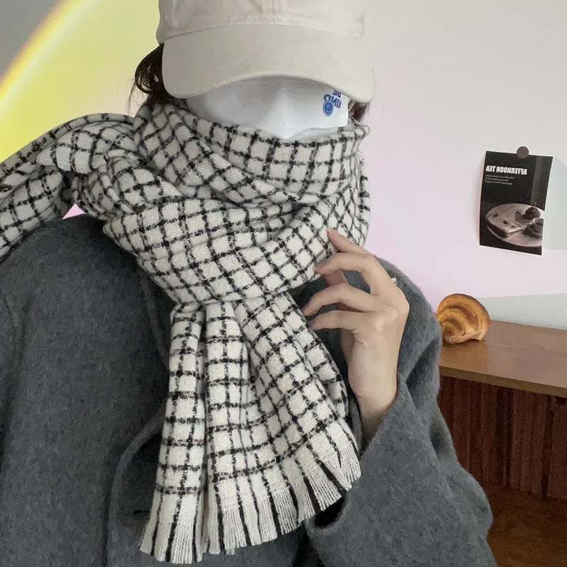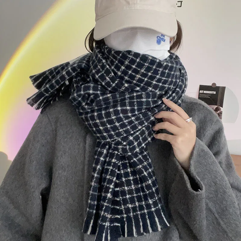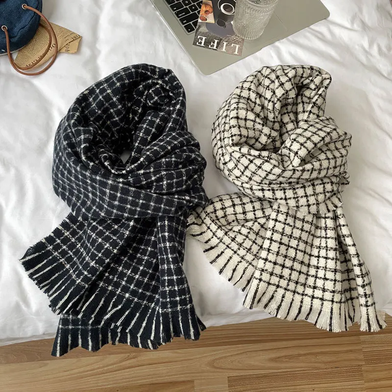 Literary Retro High-quality Plaid Scarf, Women's Warmth, Autumn and Winter Scarf, Shawl, Dual-purpose Couple
