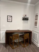 - Space-Saving Design: This 63″W x 19.69″D bar table fits perfectly in small spaces while delivering ample room for home bar experience.