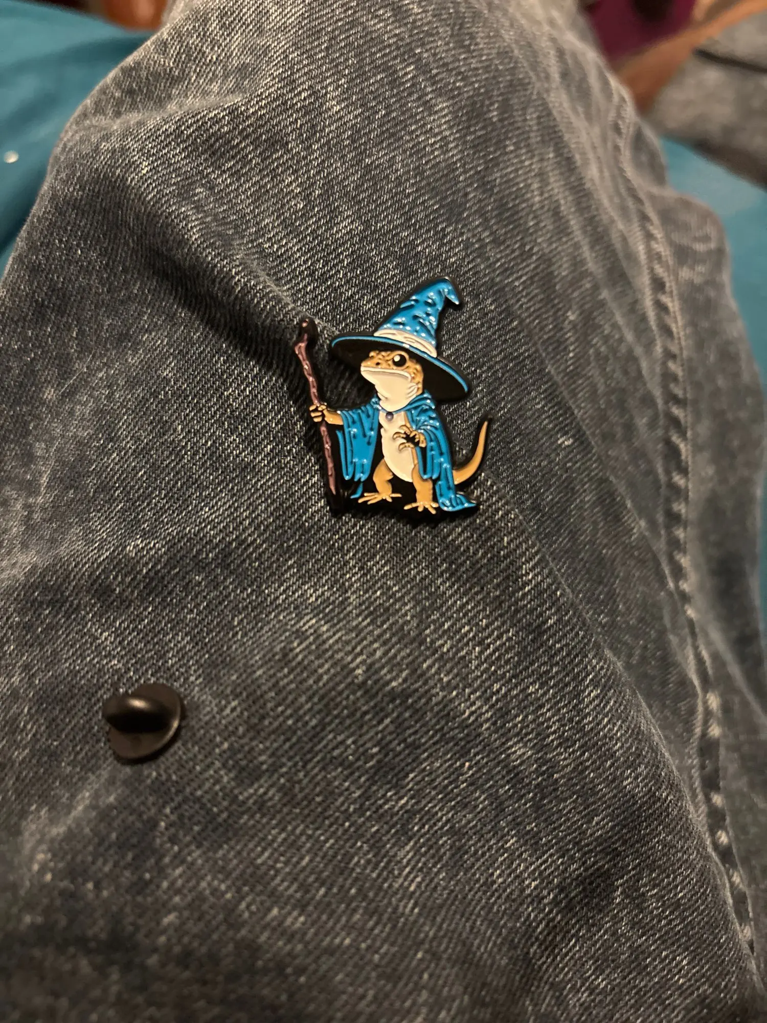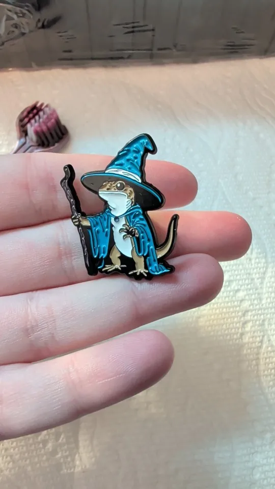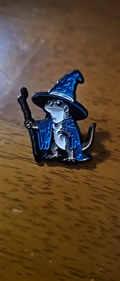 Very cute wizard lizard pin.