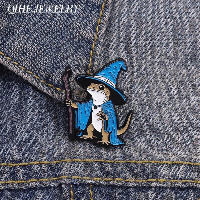 Lizard Wizard Enamel Pins Punk Gothic Blue Animal Metal Brooches Decorate Backpack Clothes Lapel Badge Funny Jewelry Gifts