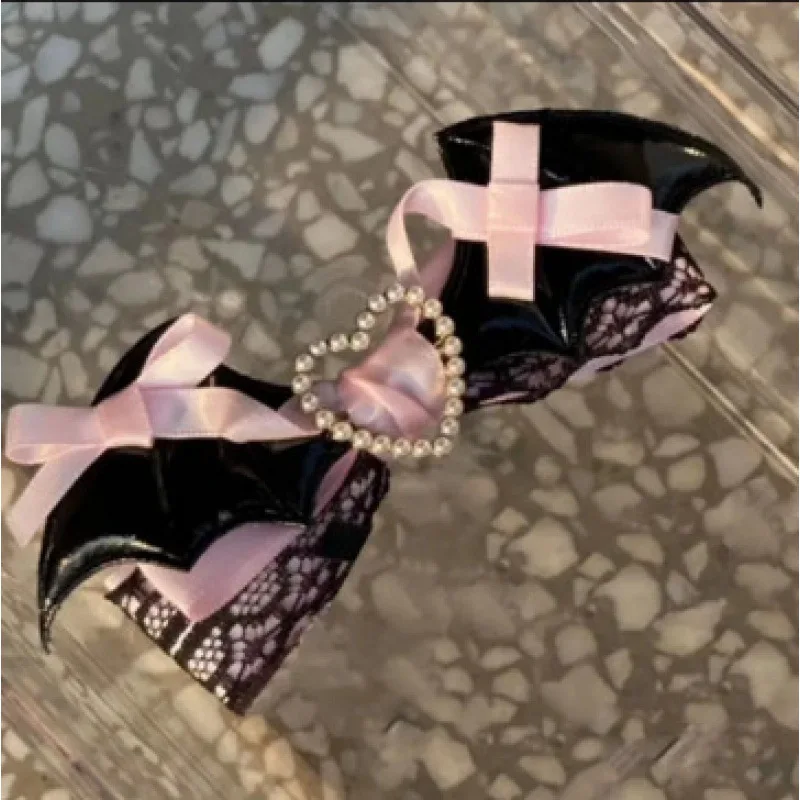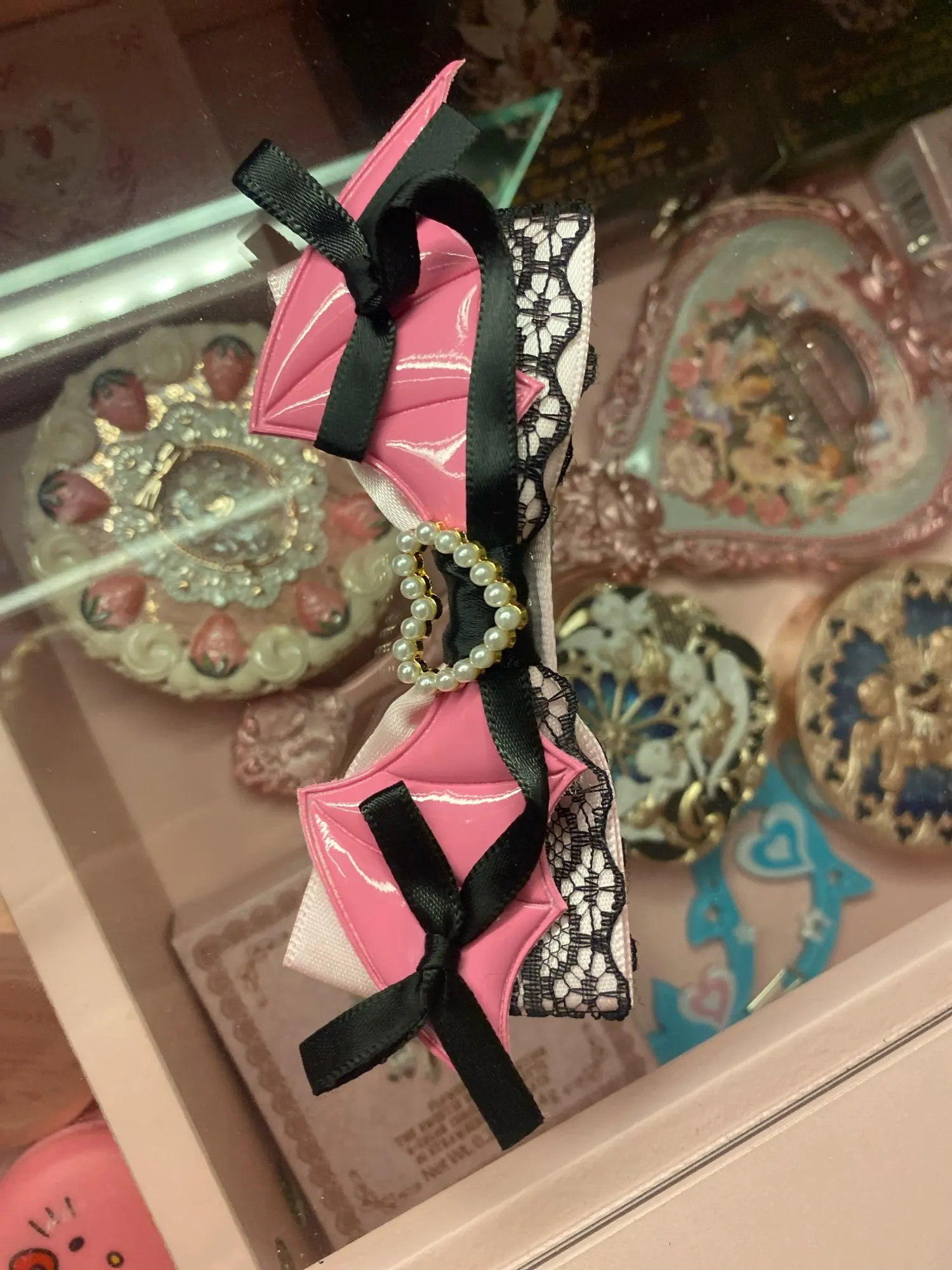 Lolita hair accessory Black Pink lace bow clip sweet girl hairpin