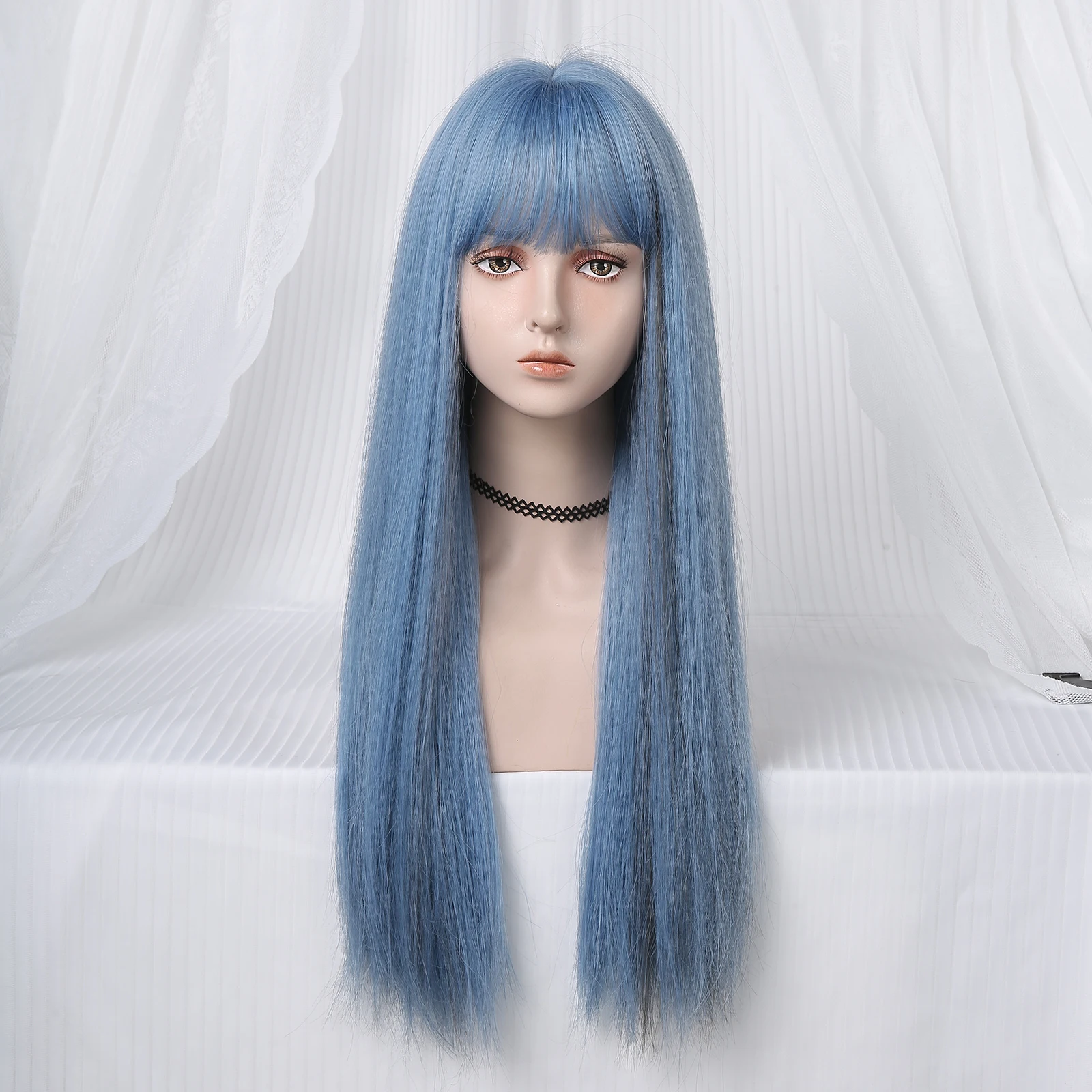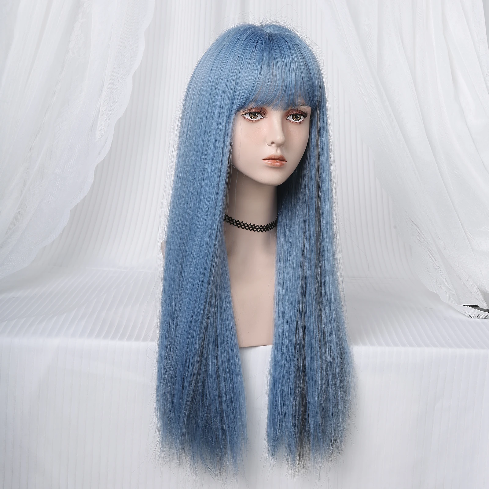 Be the first to review “Long Straight Synthetic Wigs Light Blue with Ash Highlight Cosplay Wig with Bangs for Women Natural Hair Heat Resistant Fiber”