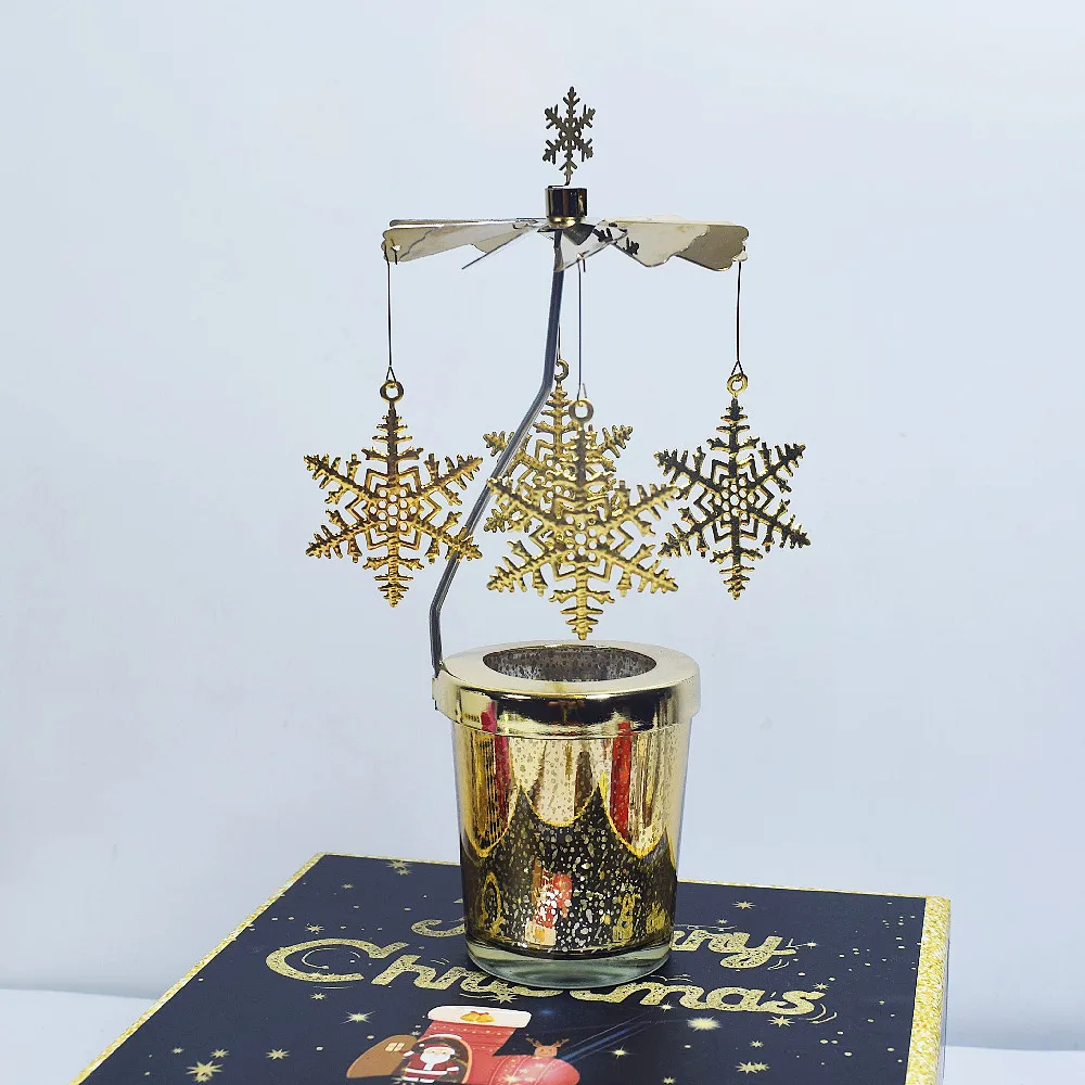 Love Wedding Candle Holders Snowflake Deer Fairy Rotating Candlestick Metal Tray Romantic Home Decoration Christmas Ornament