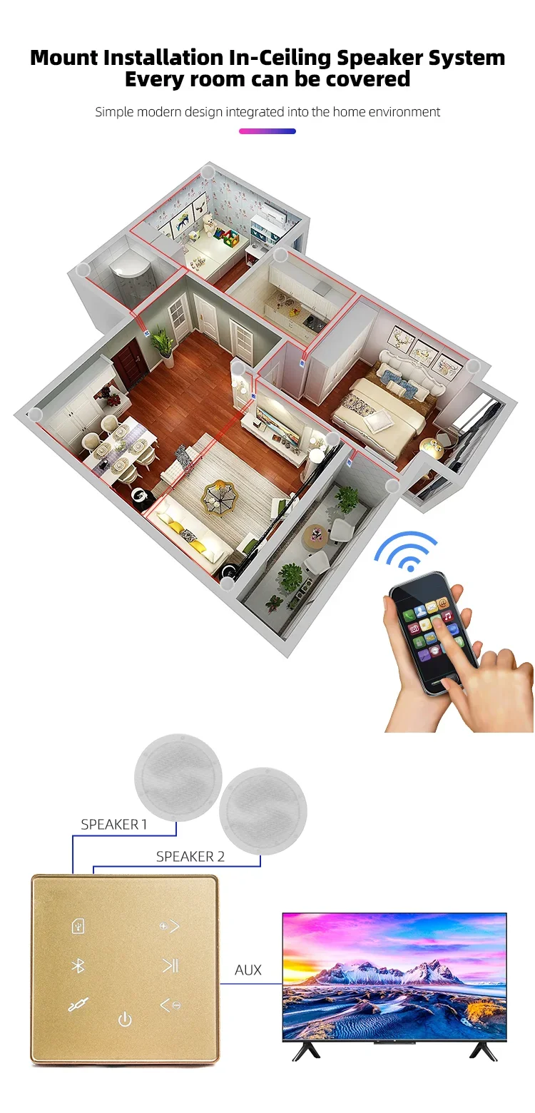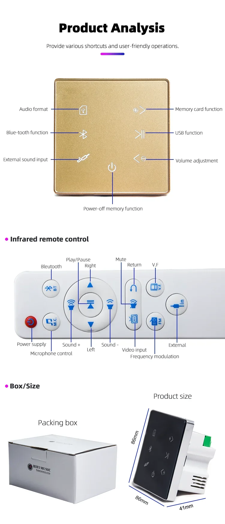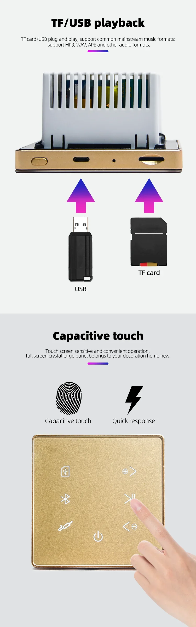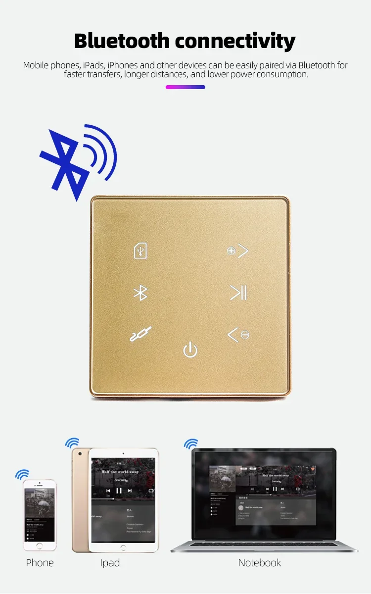 Smart Home Audio Mini Touch Key Bluetooth Wall Amplifier Hardware Parameters: