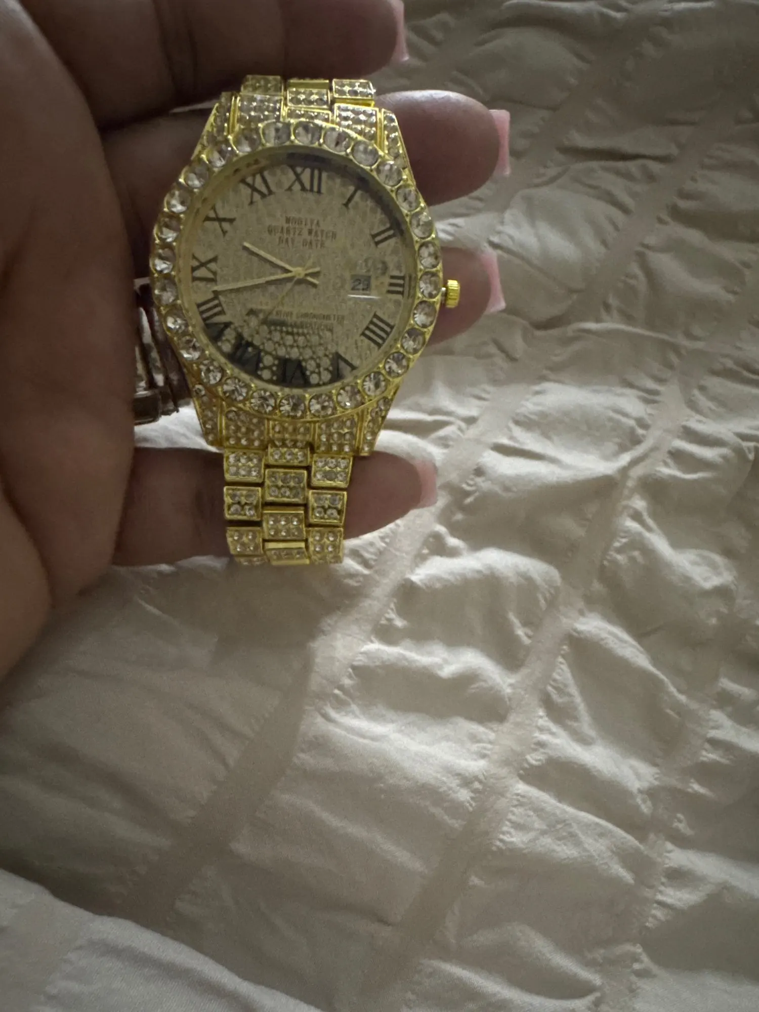 16 reviews for Luxury Classic Golden Men’s Steel Strap Roman Scale Rhinestone Calendar Quartz Watch Fashion Male Wristwatch Relogio Masculino