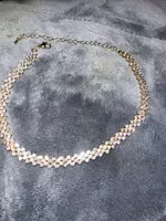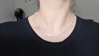 Very nice choker it’s kind of small in size so don’t think it big like picture it’s a little smaller then you have it in your hand.
