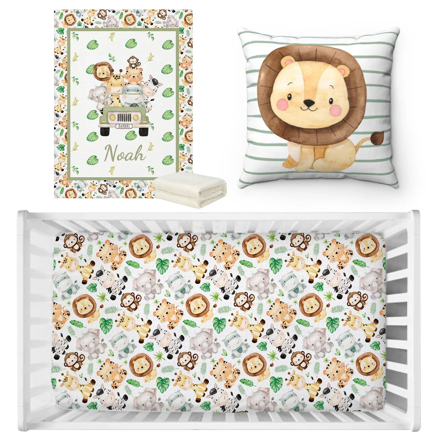 Product Name: LVYZIHO Animals Baby Boy Crib Bedding Set, Jungle Nursery Decor Personalized Bedding Set, Baby Shower Gift Crib Blanket
