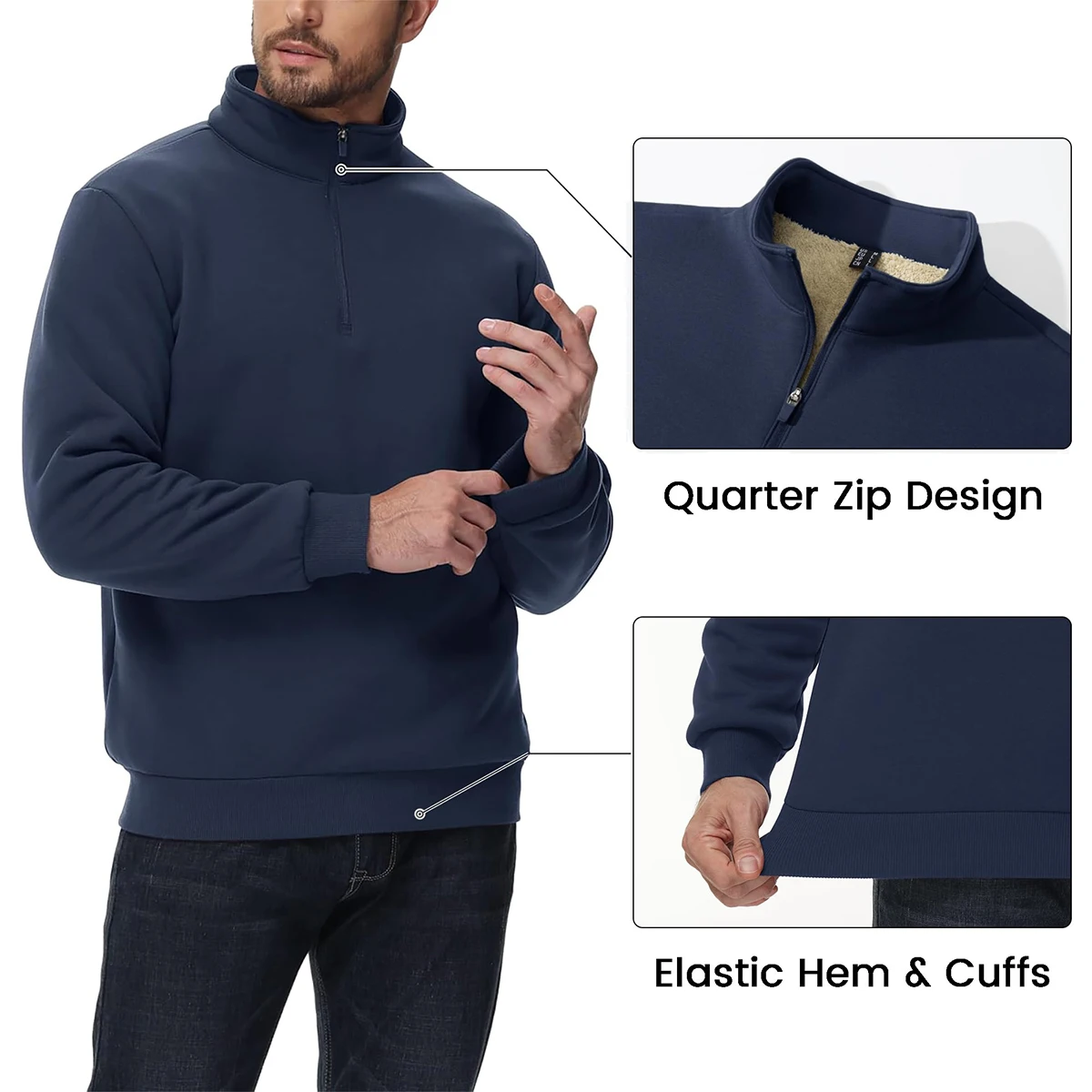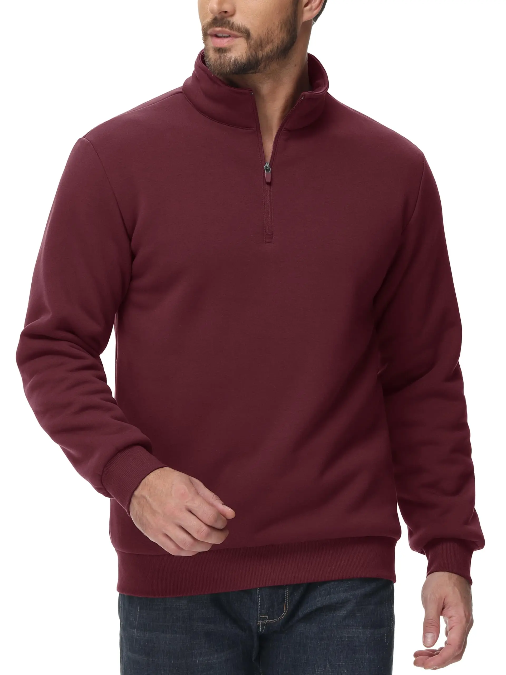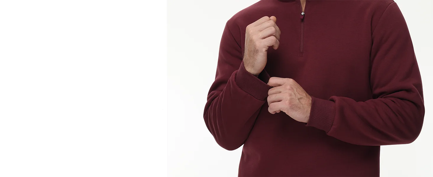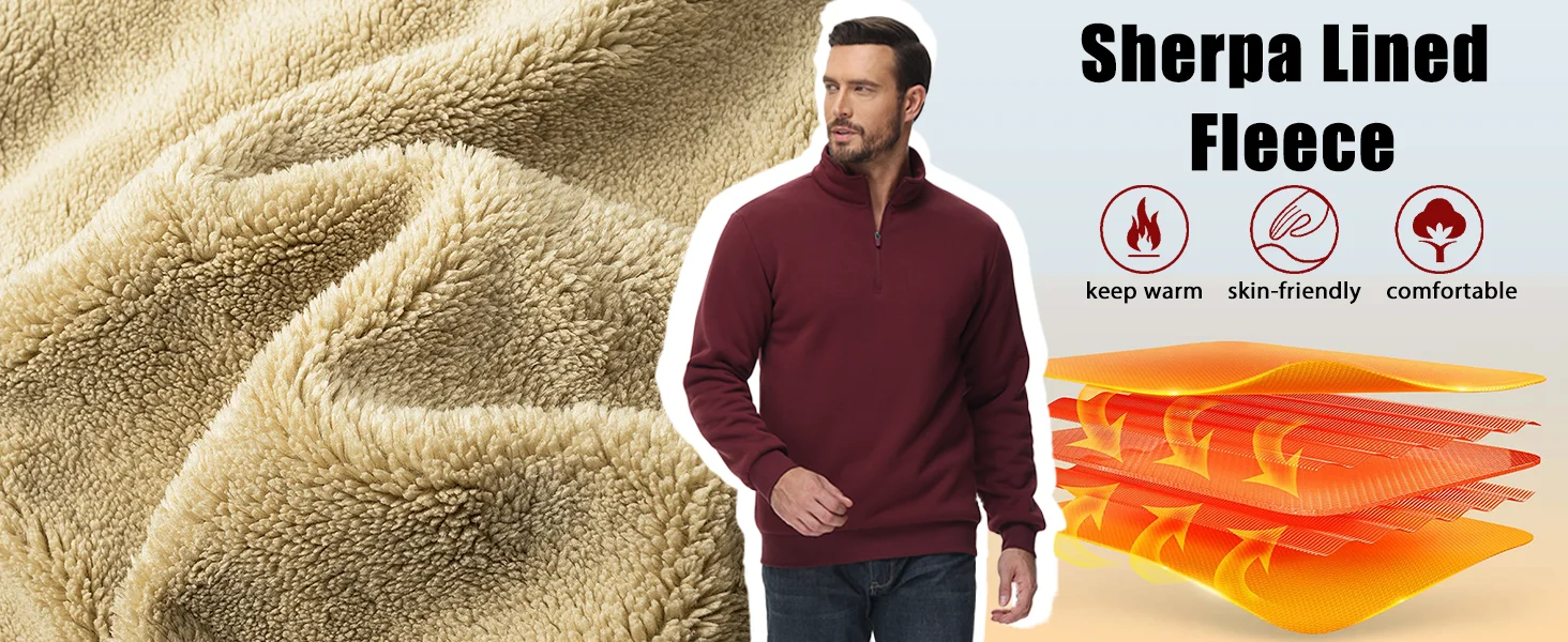 ● Material: 95% Cotton & 5% Spandex. This 1/4 zip sweatshirt is made of thick quality fleece fabric. It has a soft feel that provides comfort and ensures warmth.