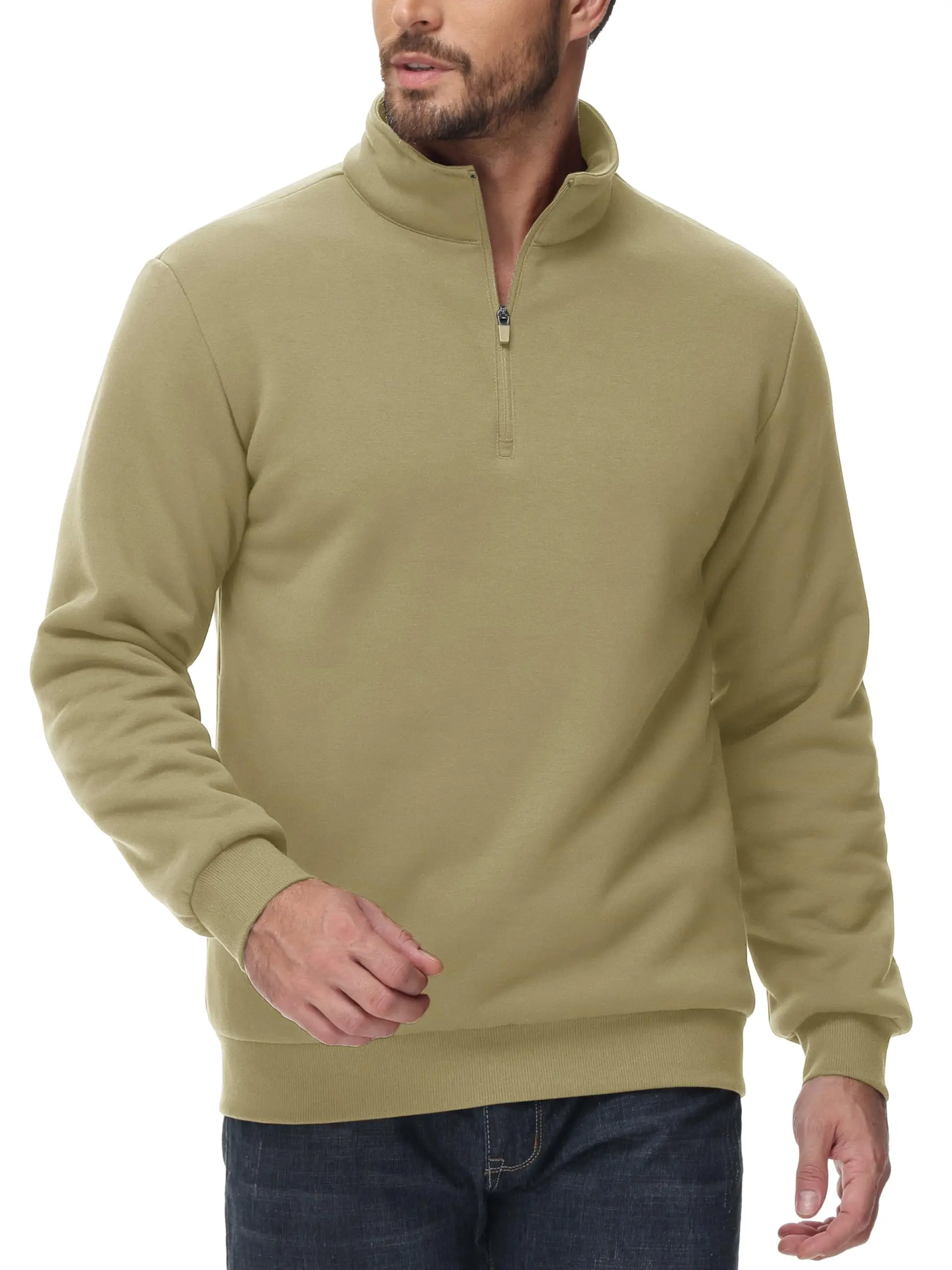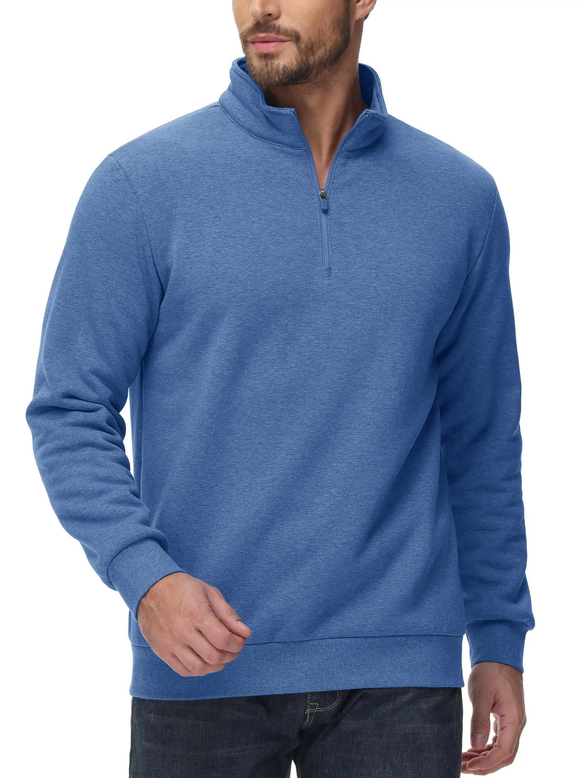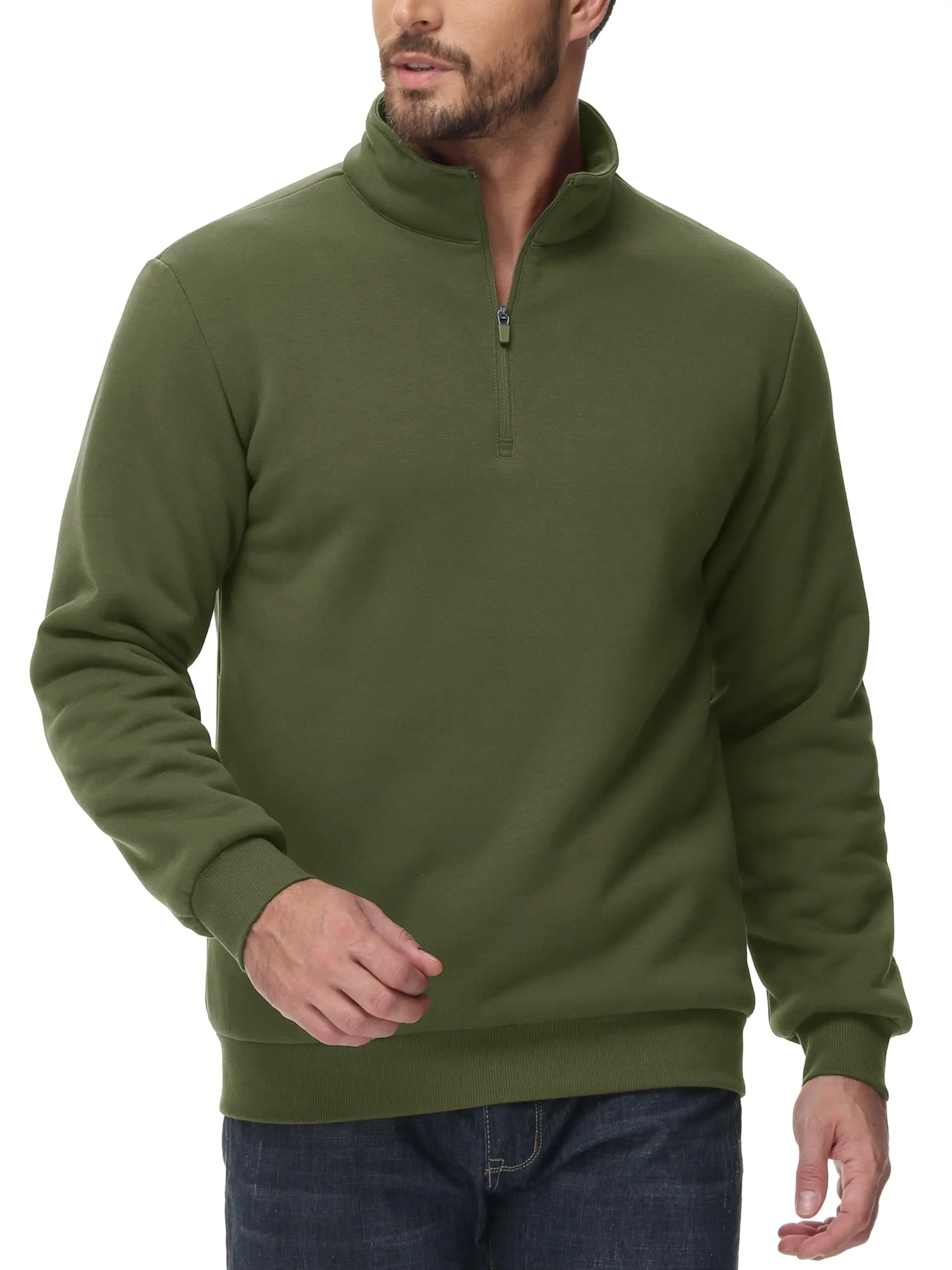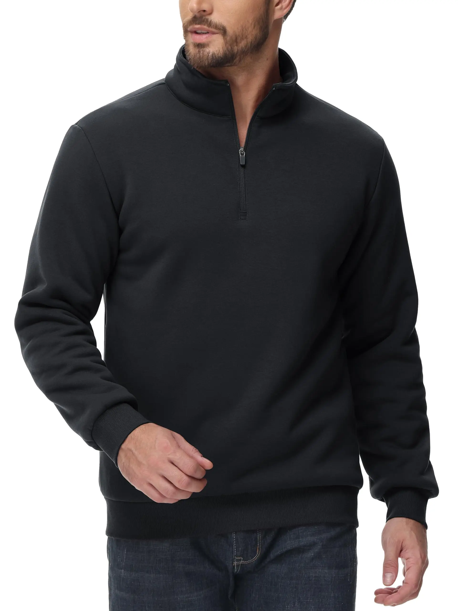 ● Material: 95% Cotton & 5% Spandex. This 1/4 zip sweatshirt is made of thick quality fleece fabric. It has a soft feel that provides comfort and ensures warmth.