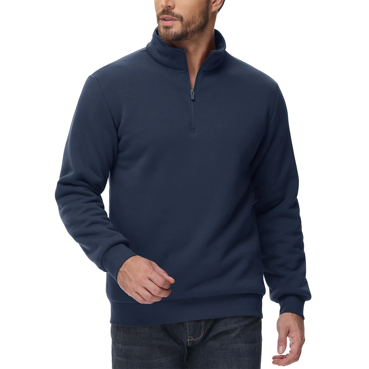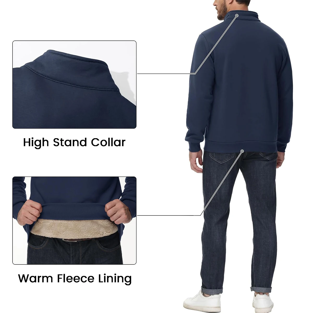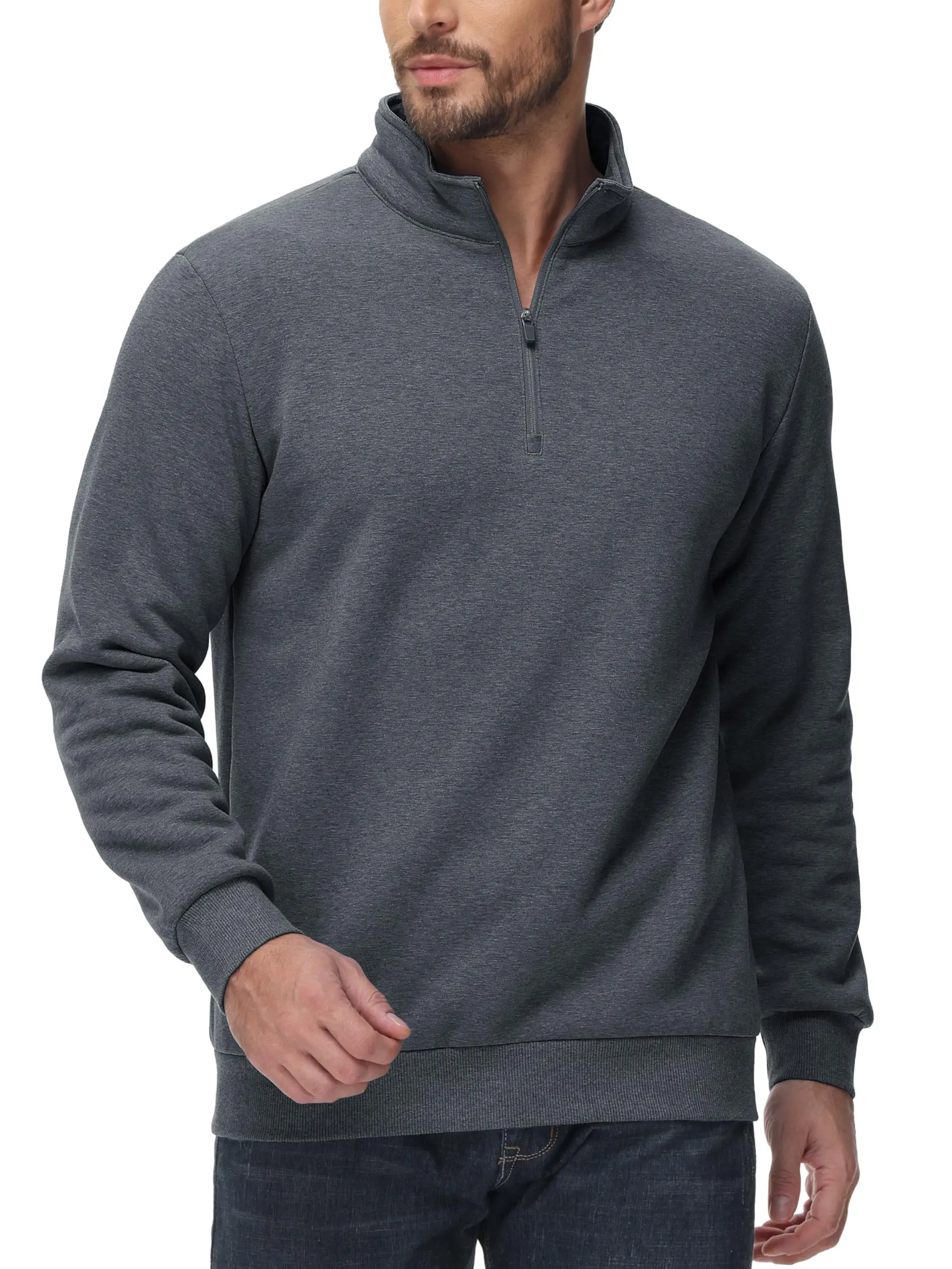 ● Material: 95% Cotton & 5% Spandex. This 1/4 zip sweatshirt is made of thick quality fleece fabric. It has a soft feel that provides comfort and ensures warmth.