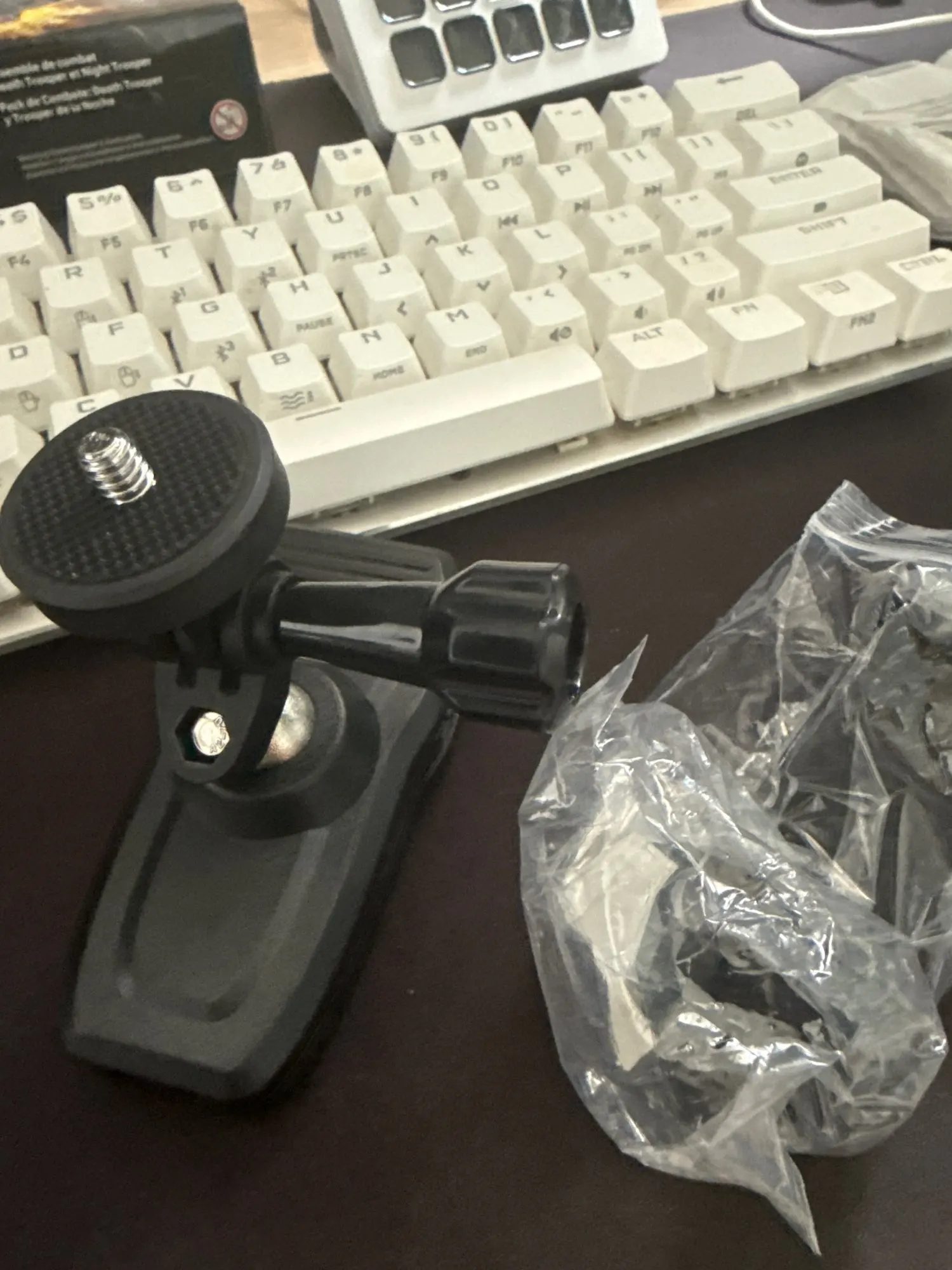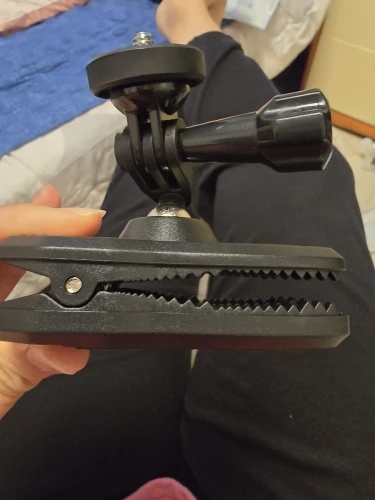 The product is of quite good quality, the clip is very strong, but the mechanism for attaching and tilting the camera is rather weak. Also, the metal hinge does not have a lock and slides off when walking, just like the main mechanism; it only stays in a stationary position.