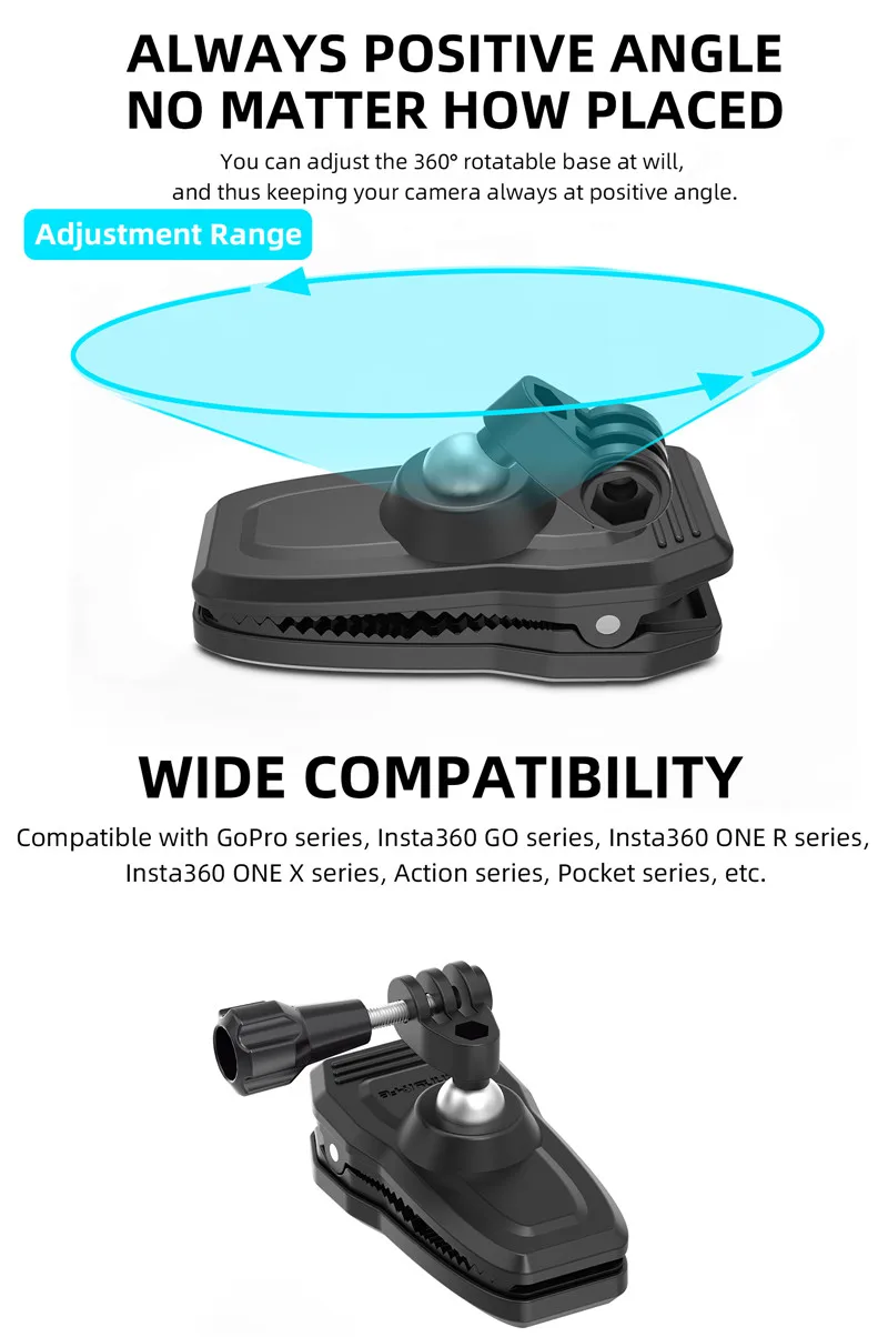5. Widely compatible: can be used for a variety of sports cameras, such as GoPro series, Insta360 GO series, Insta360 ONE R series, Insta360 ONE X series, Action series, Pocket series, etc.; the included 1/4 adapter can be directly installed on cameras with 1/4 screw holes on the bottom such as Insta360 X2 X3 X4.