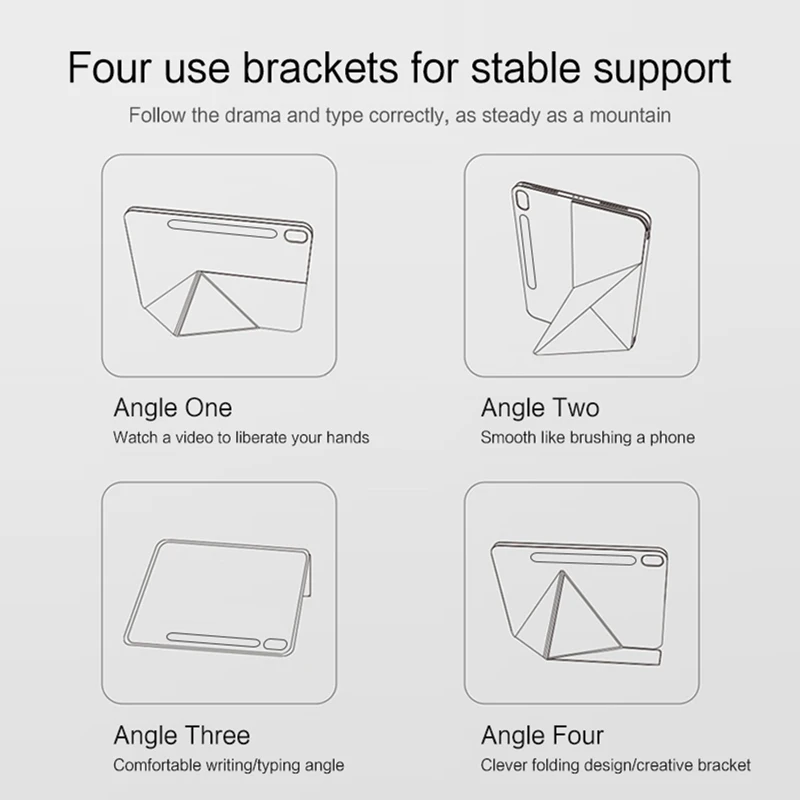 This is a magnetic protective case with intelligent sleep and wake up function, which is very lightweight and anti drop. It can support your tablet, making it easy to watch videos and entertainment. It also facilitates your office needs and supports the angle. The product has a Stylus Pen storage slot at the back to protect your handwriting Stylus pen from loss and damage.