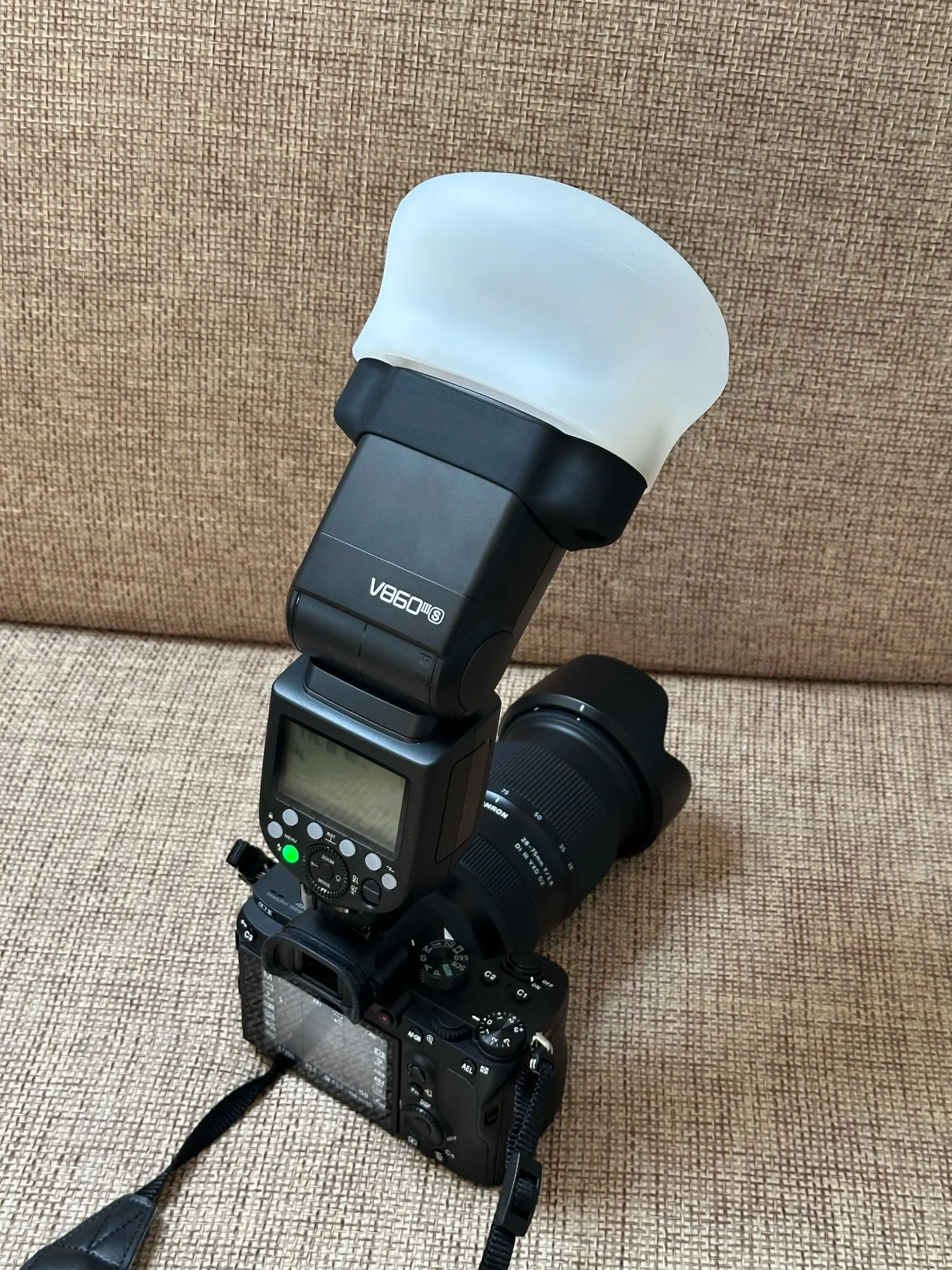 Mounted on a Godox V860II and the rubber fits perfectly with the magnets. It diffuses the light very well, without losing much light. I don’t know how the magmod one will be, but this one is great for its price.