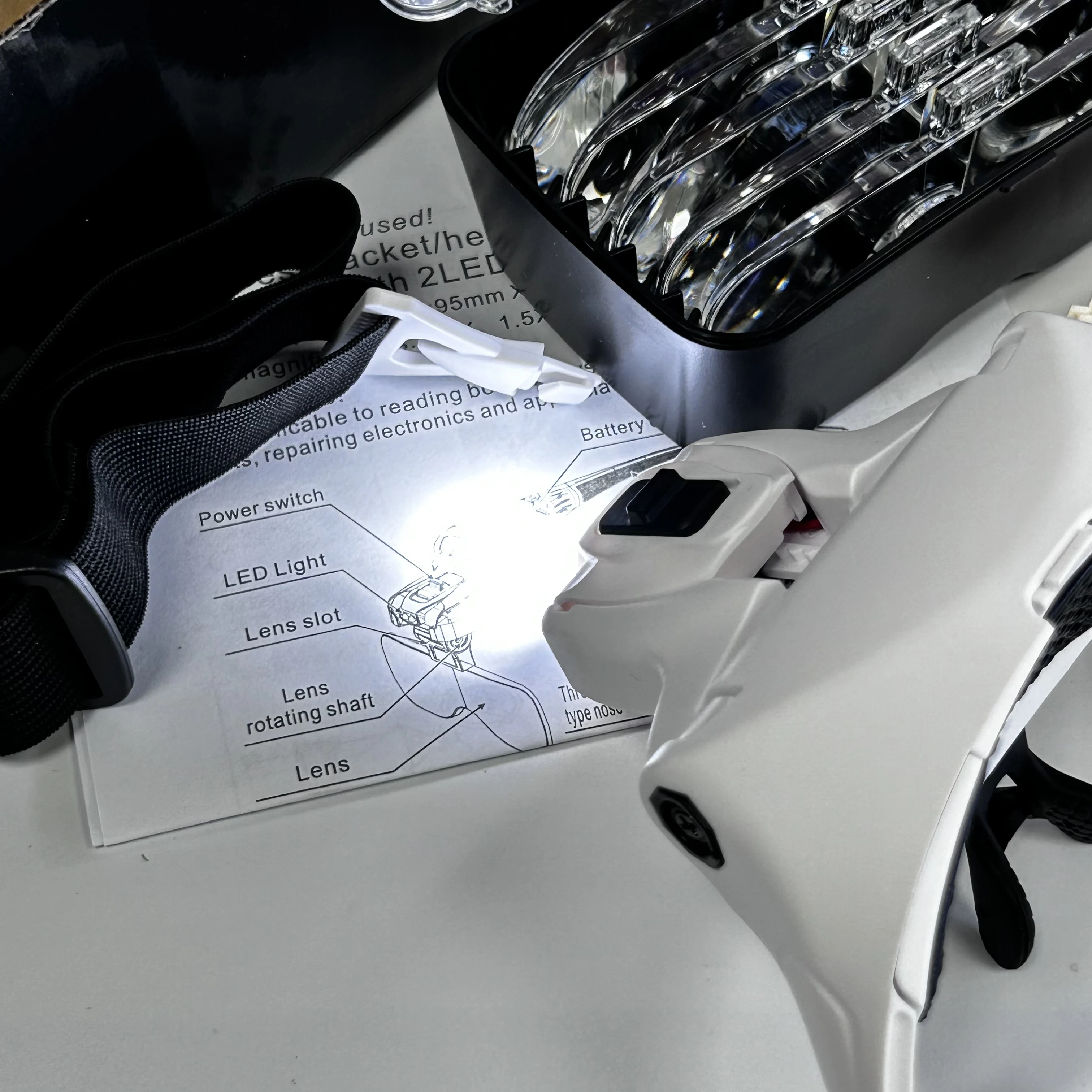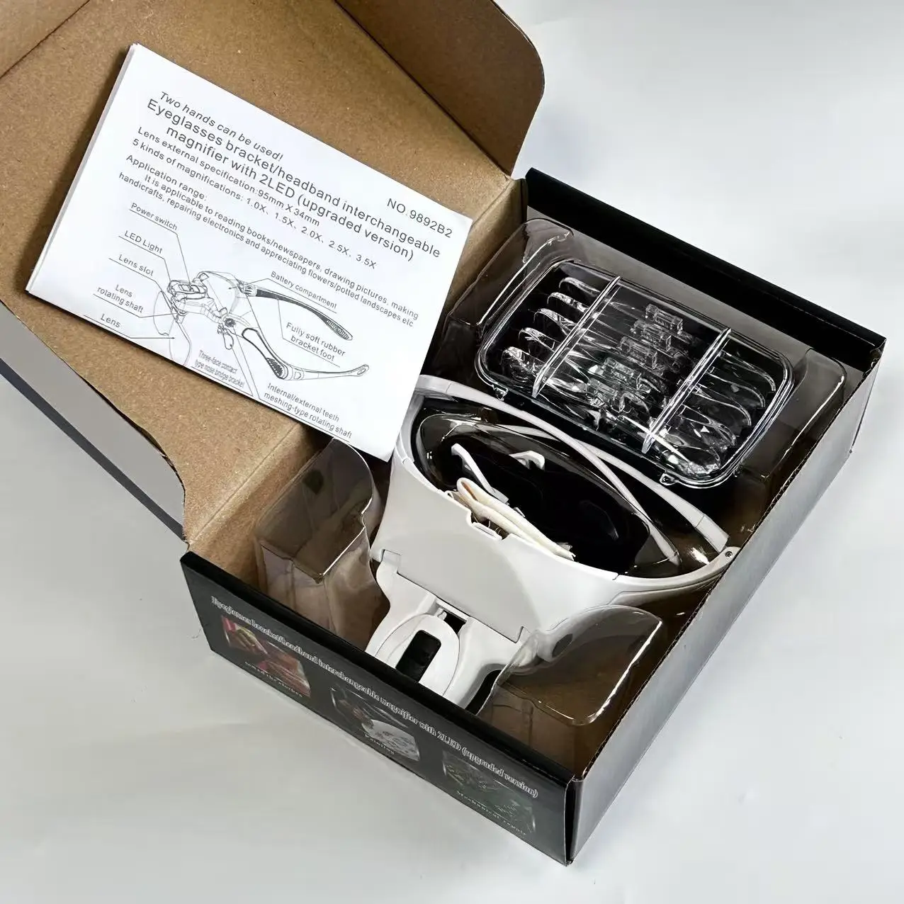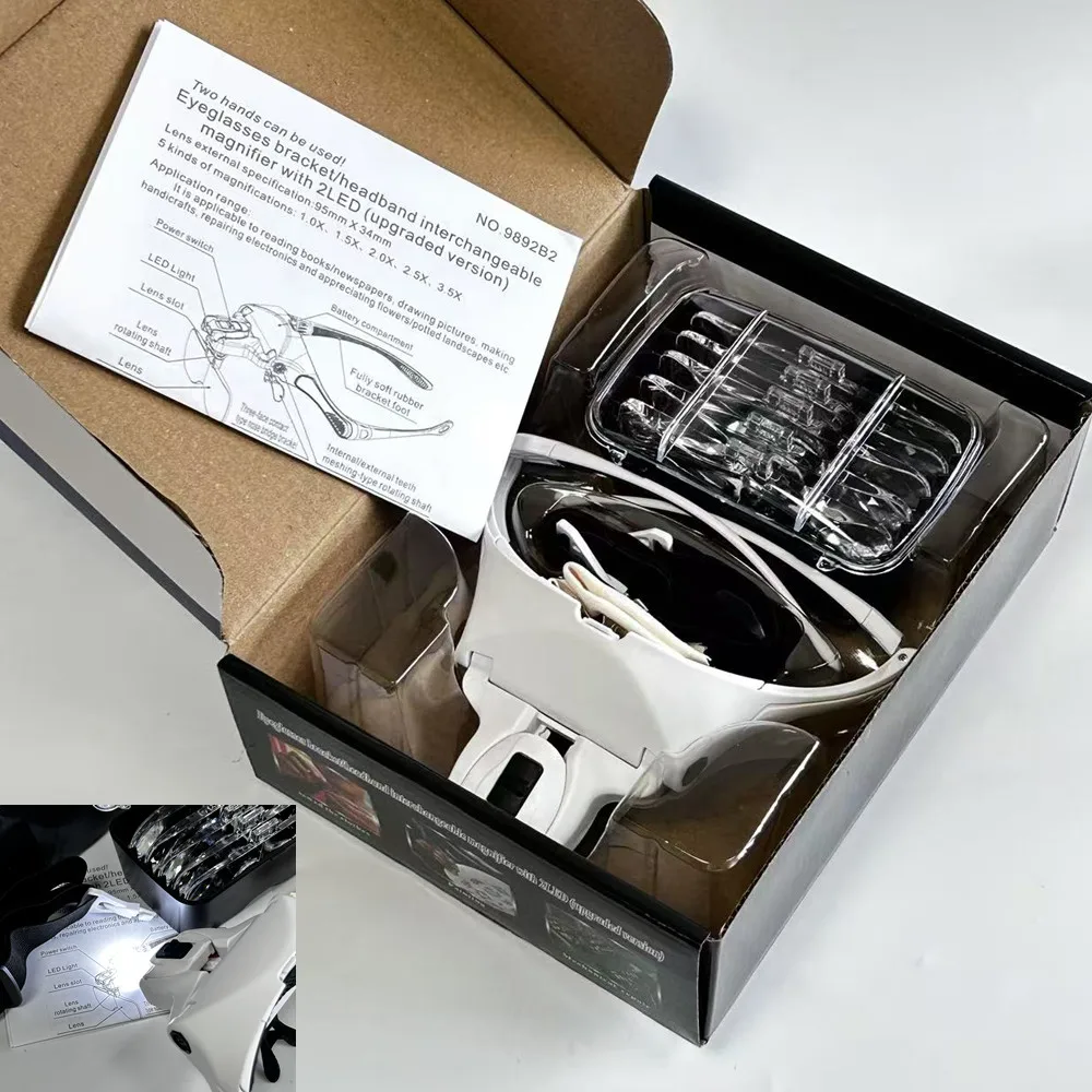 Improve your vision and enjoy every moment of fine work! This head-mounted magnifier with LED light and adjustable headband is an ideal tool for fine work, reading, repair, jewelry making and other detailed work. It is suitable for any work occasion that requires precise vision and easily provides you with a clear visual experience.