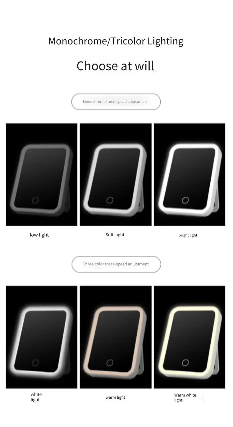 • LED Lighting :The LED light provides bright and even illumination, ensuring that you can see yourself clearly.
