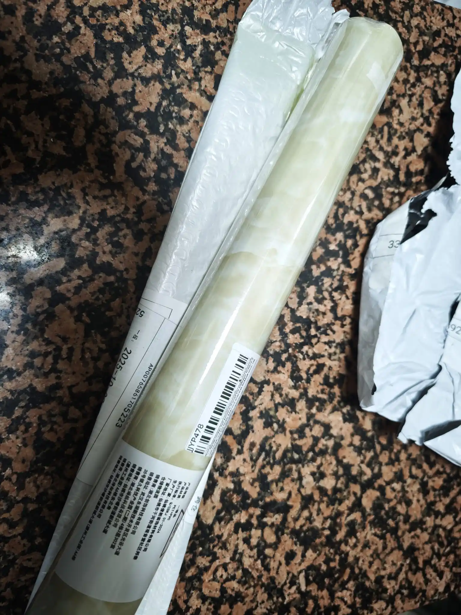 Delivered on time, well protected with its inner foam roll, yet it was not enough to prevent it from bending slightly at one edge during transport, nothing worrying otherwise, no marks left on the material… Product as described, although for some reason I thought it would have more body. It is extremely thin, but sufficiently opaque. It has turned out very well.
