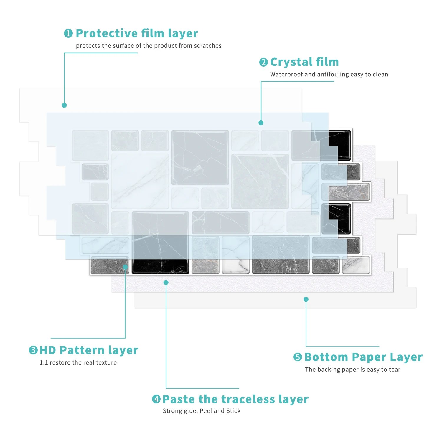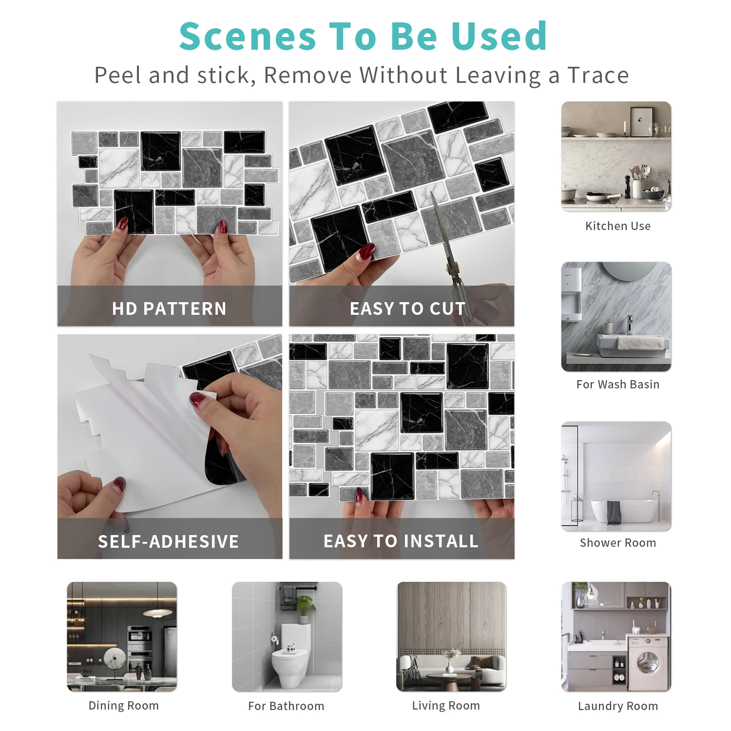 Self-Adhesive: Peel and stick for quick installation.