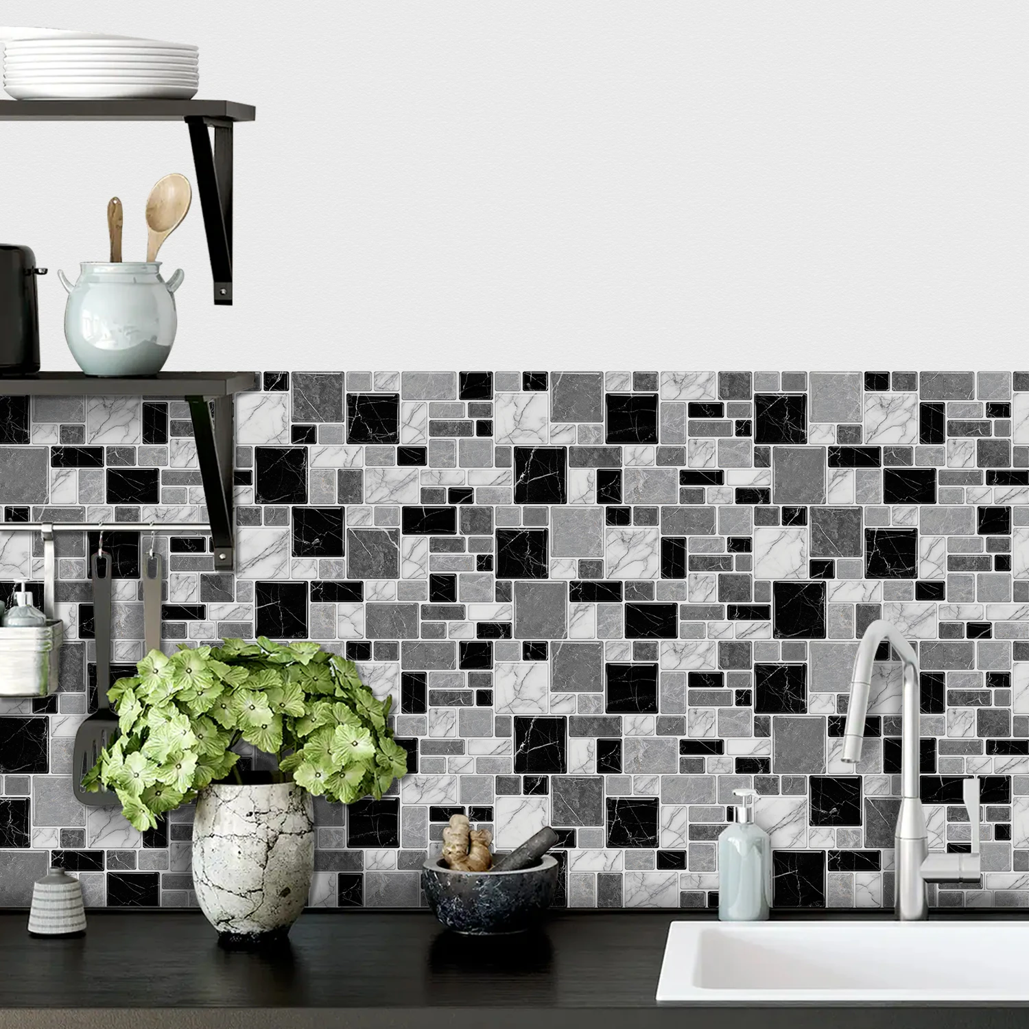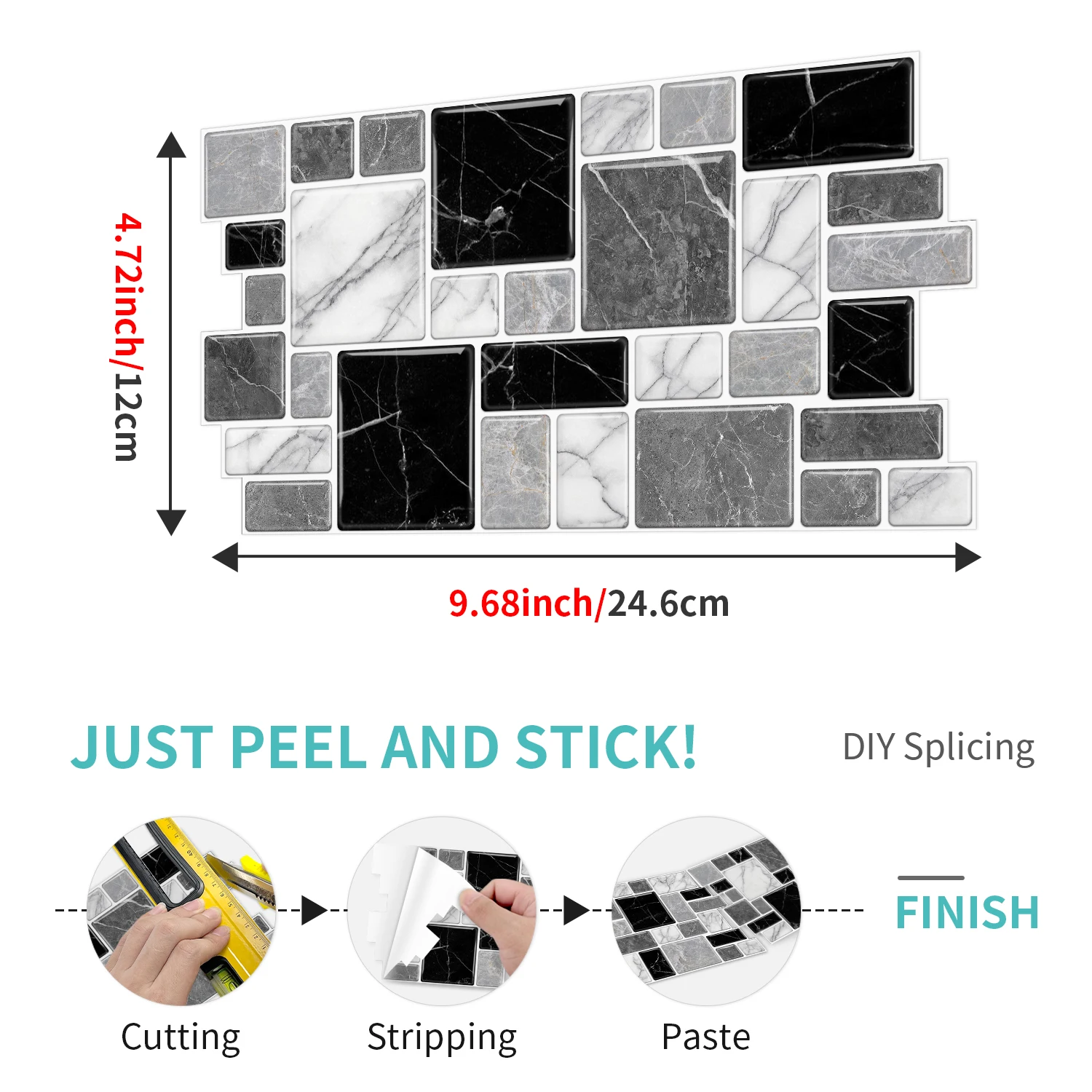 Marble Peel and Stick Backsplash Tiles 3D Self Adhesive Wall Sticker for Kitchen Bathroom Waterproof Home Decor DIY