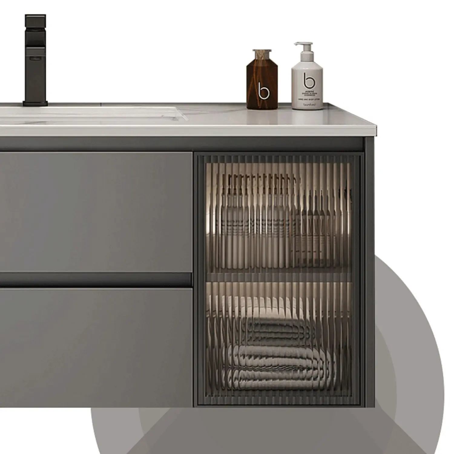 Crafted from premium marble, this vanity cabinet offers a luxurious touch and enduring elegance to your bathroom.