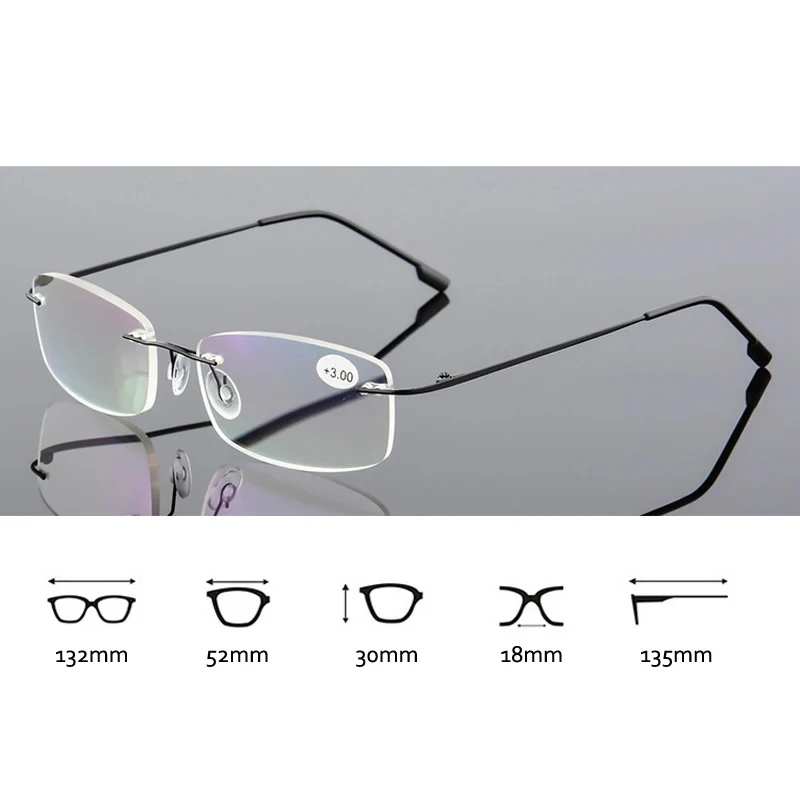 19 reviews for May Flower Blue Light Blockin Ultralight Memory Titanium Rimless Reading Glasses Men&Women Presbyopic Eyeglasses +1.0 +1.5 +2.0