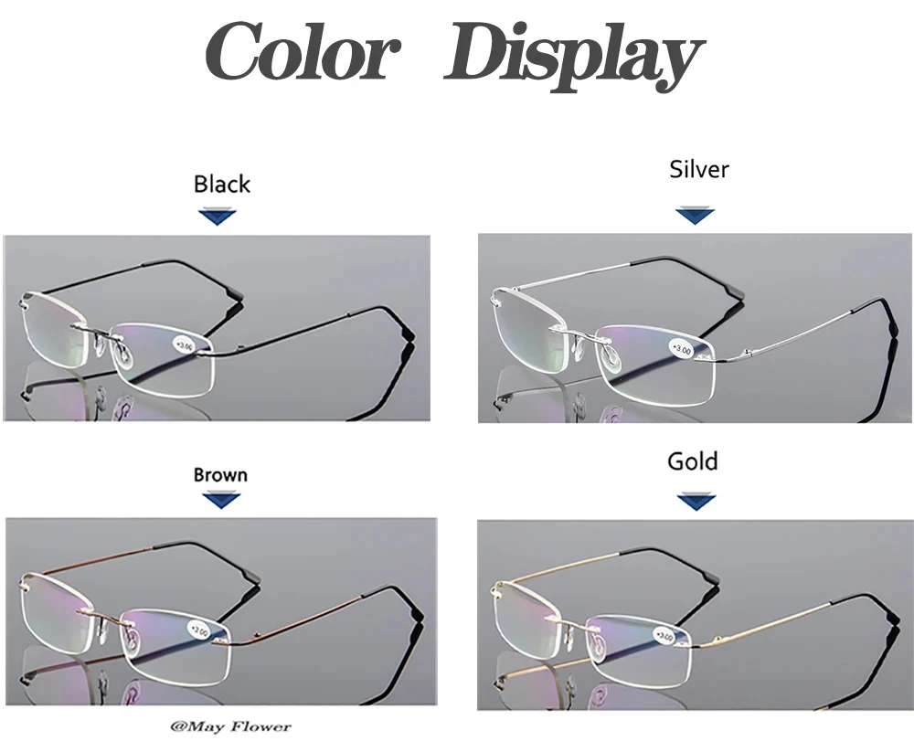 May Flower Blue Light Blockin Ultralight Memory Titanium Rimless Reading Glasses Men&Women Presbyopic Eyeglasses +1.0 +1.5 +2.0