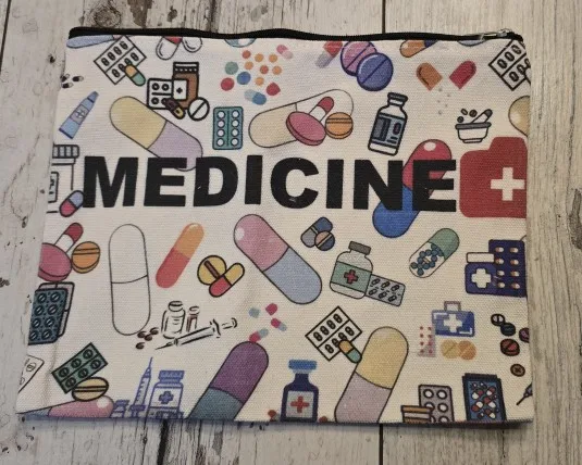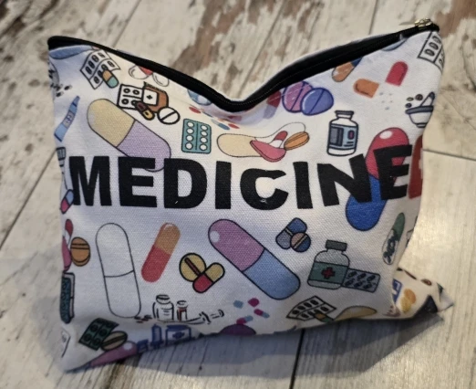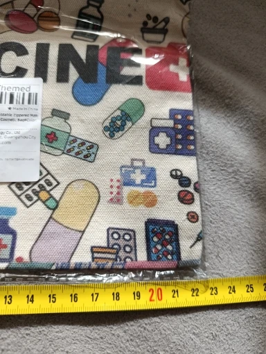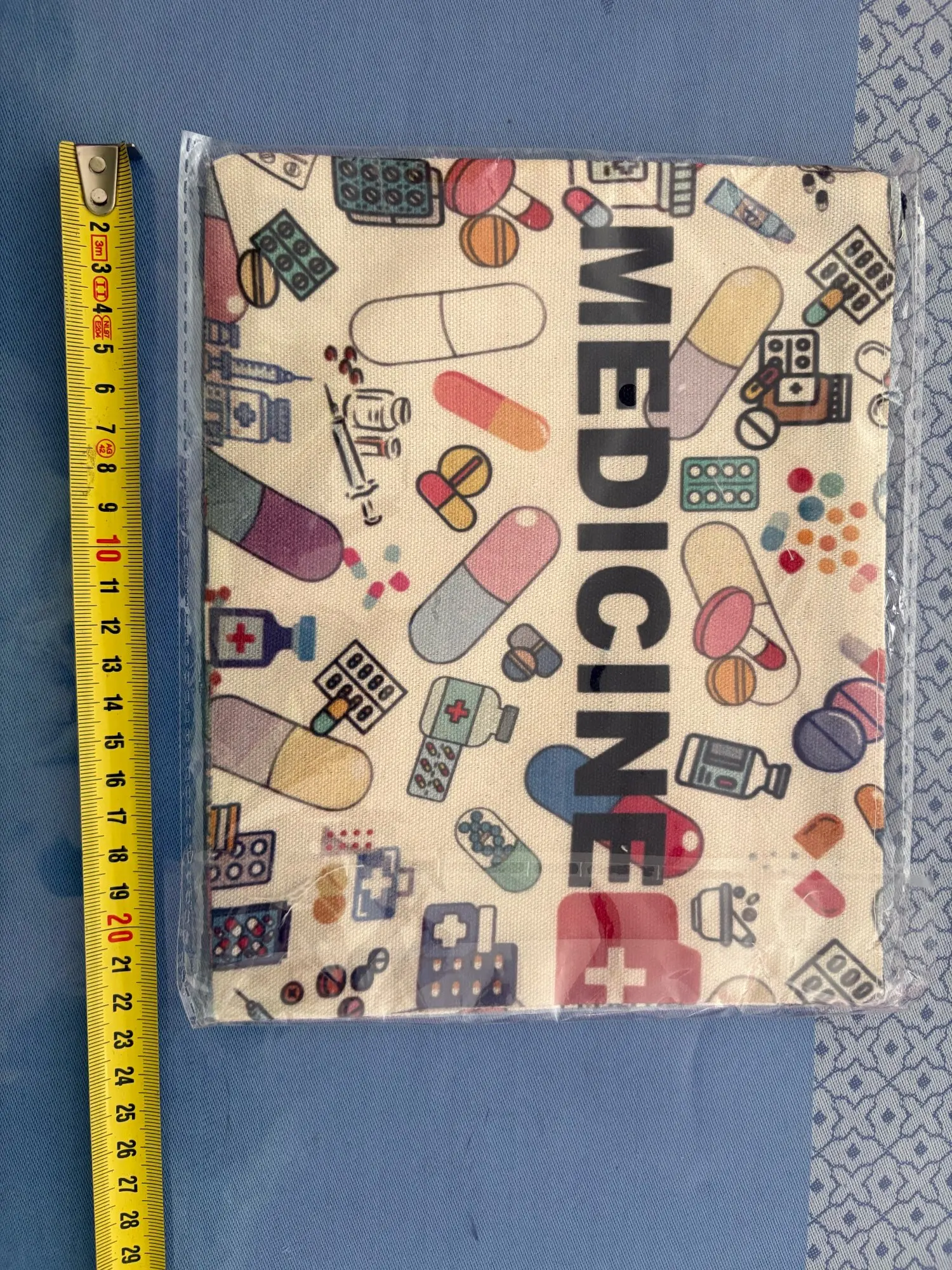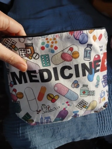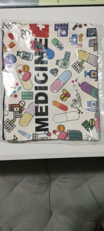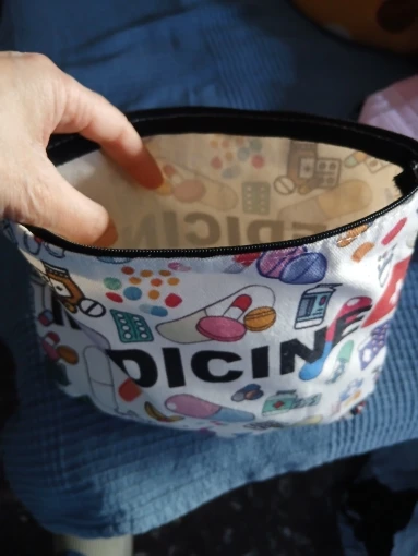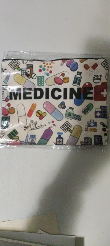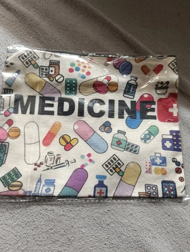 Super cosmetic bag for medicines. Printed on both sides in material. Great deal for this price, I recommend it.