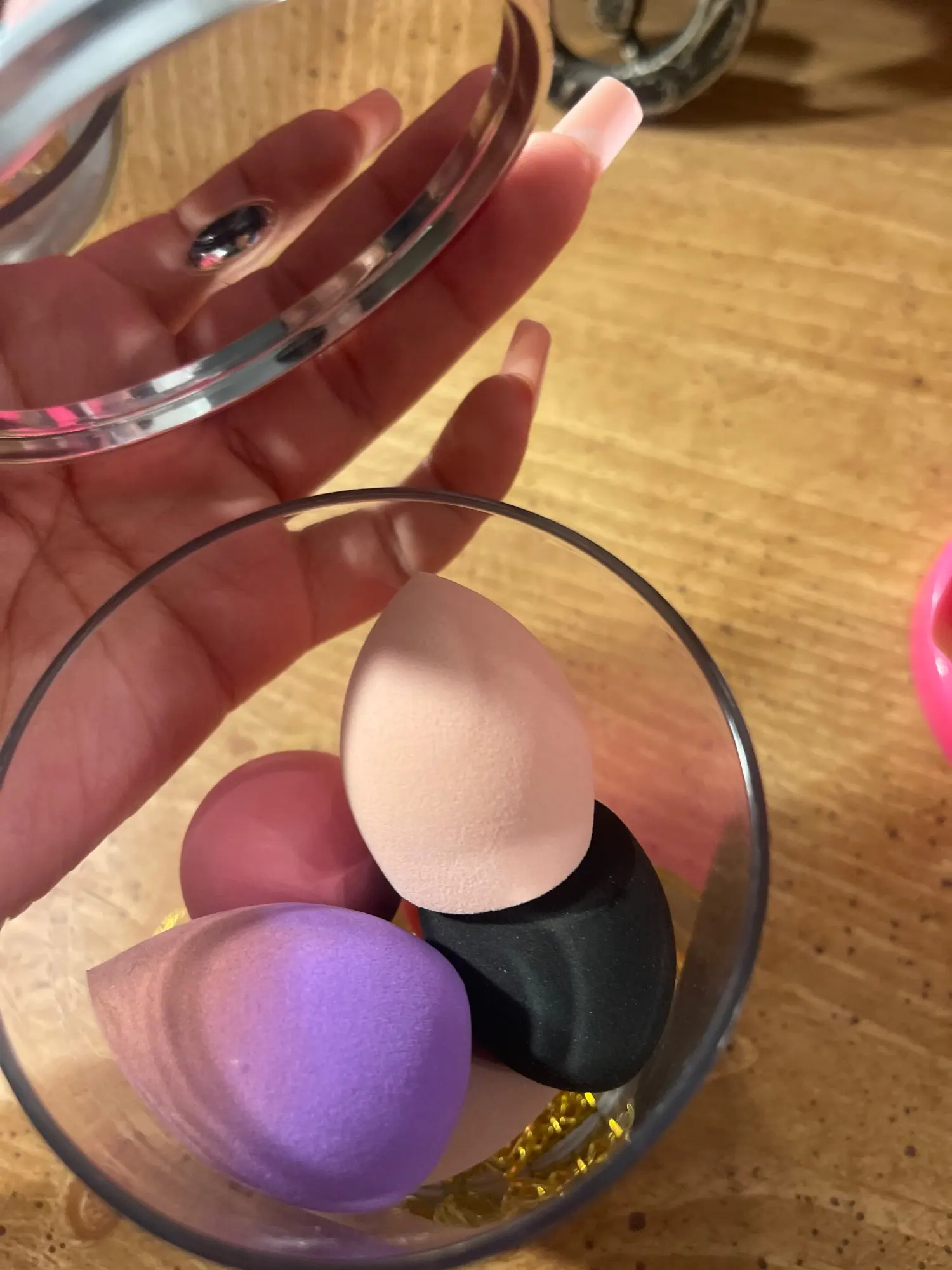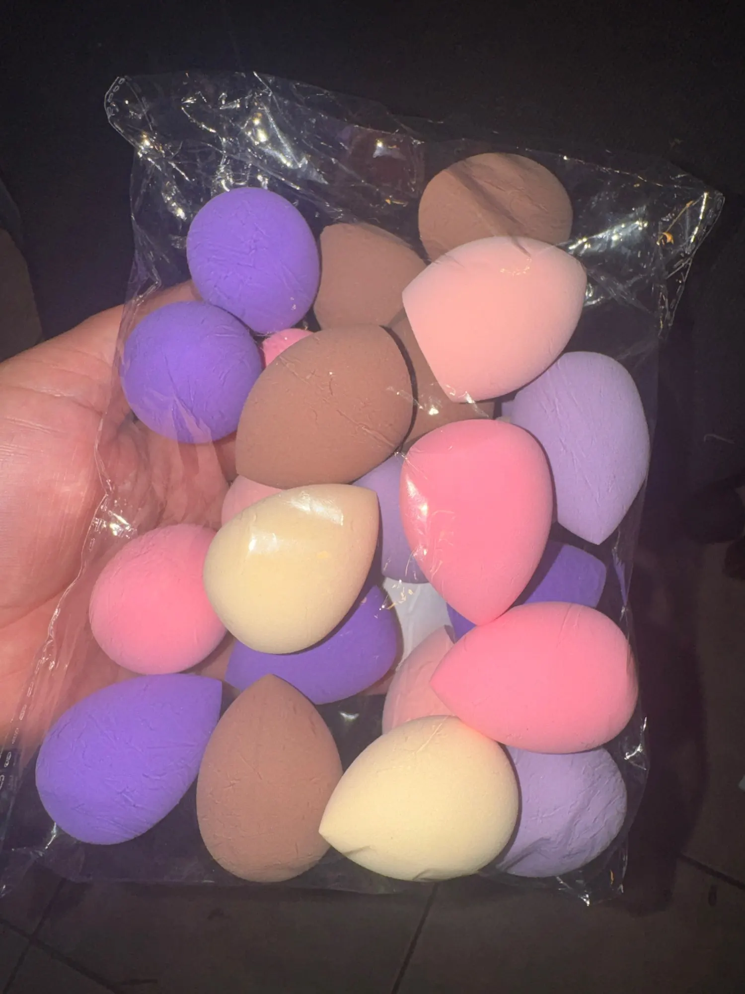 Handy little beauty blenders. With a bag so full, my daughters feel comfortable throwing away any that grow mold (due to not putting them away dry.) The price is great.
