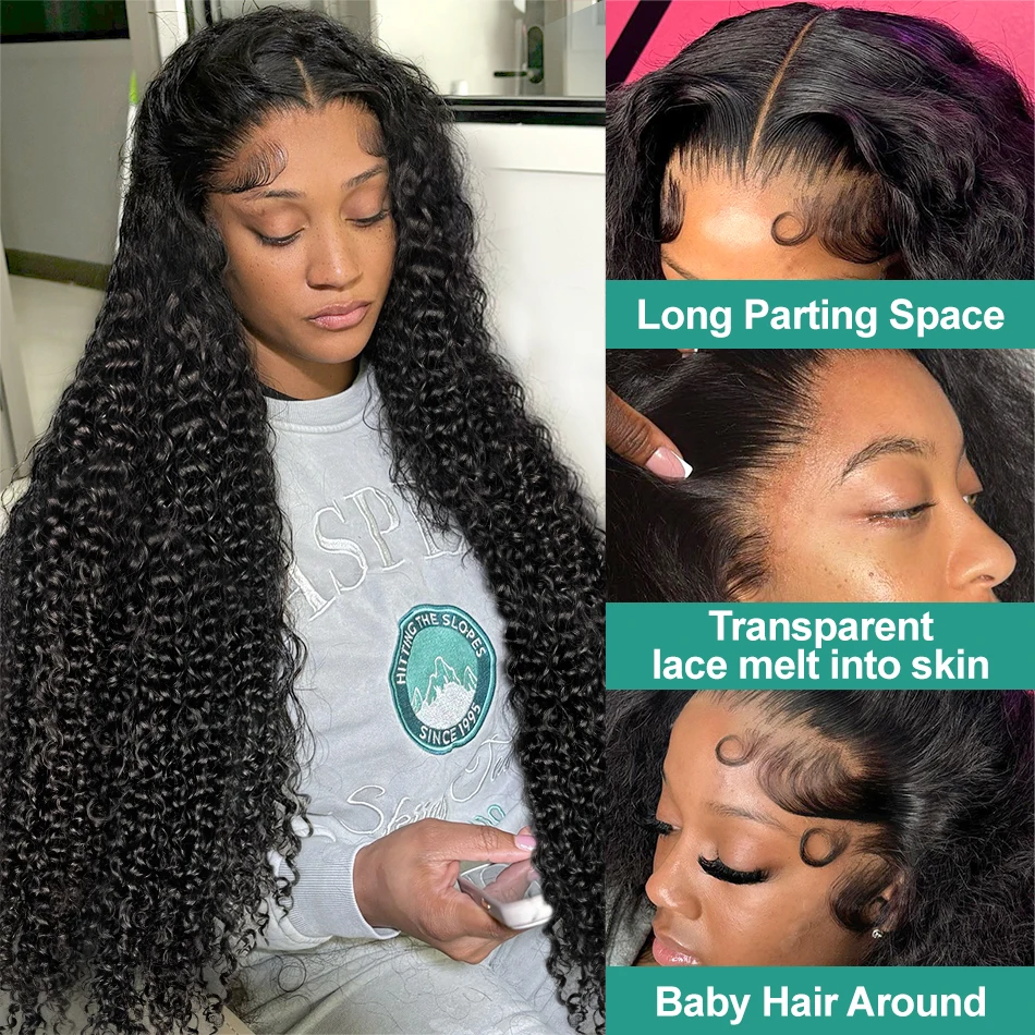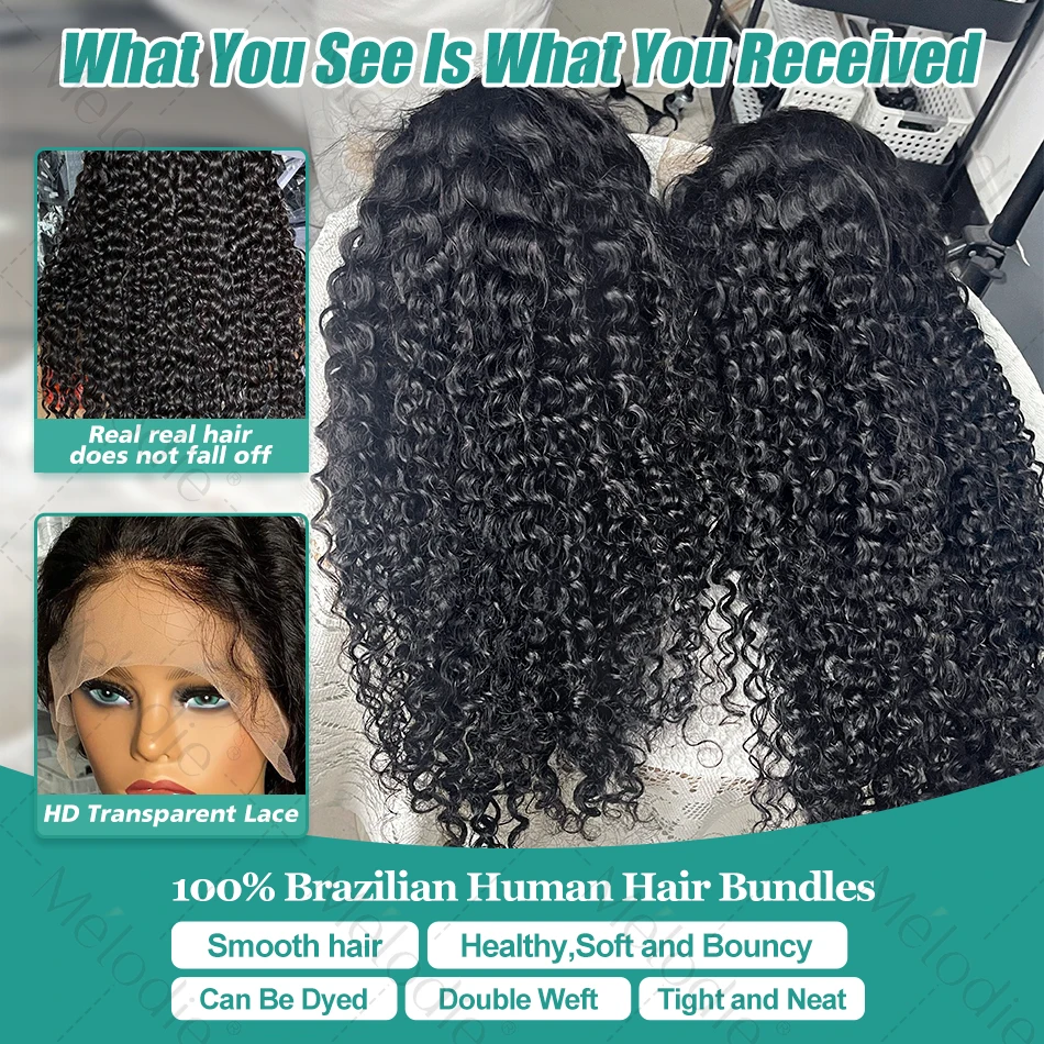 Melodie Curly 250% 40 HD 13×6 Lace Front Human Hair Wigs 5×5 Glueless Ready To Wear Deep Wave Transparent 13×4 Lace Frontal Wig