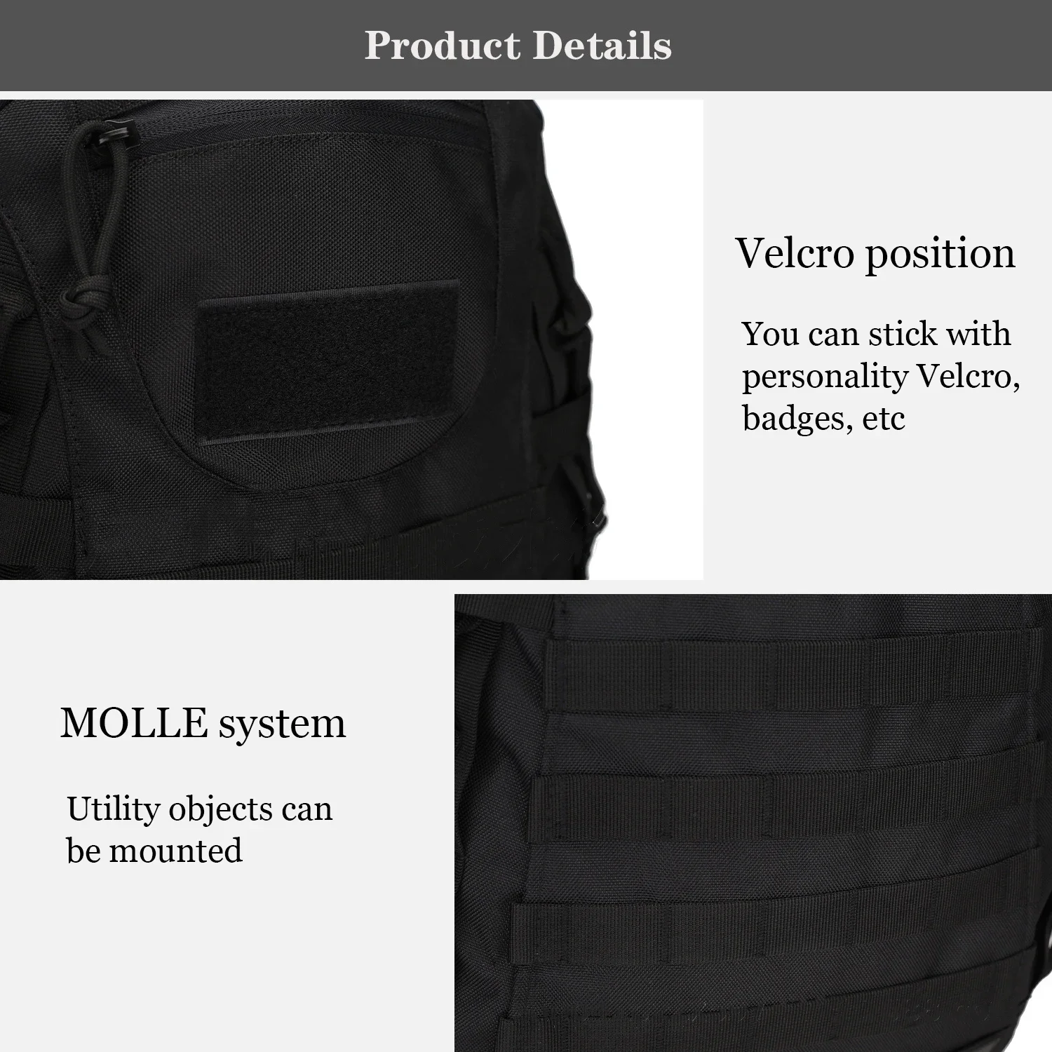 4. External Velcro, built-in fixed adjustable rope