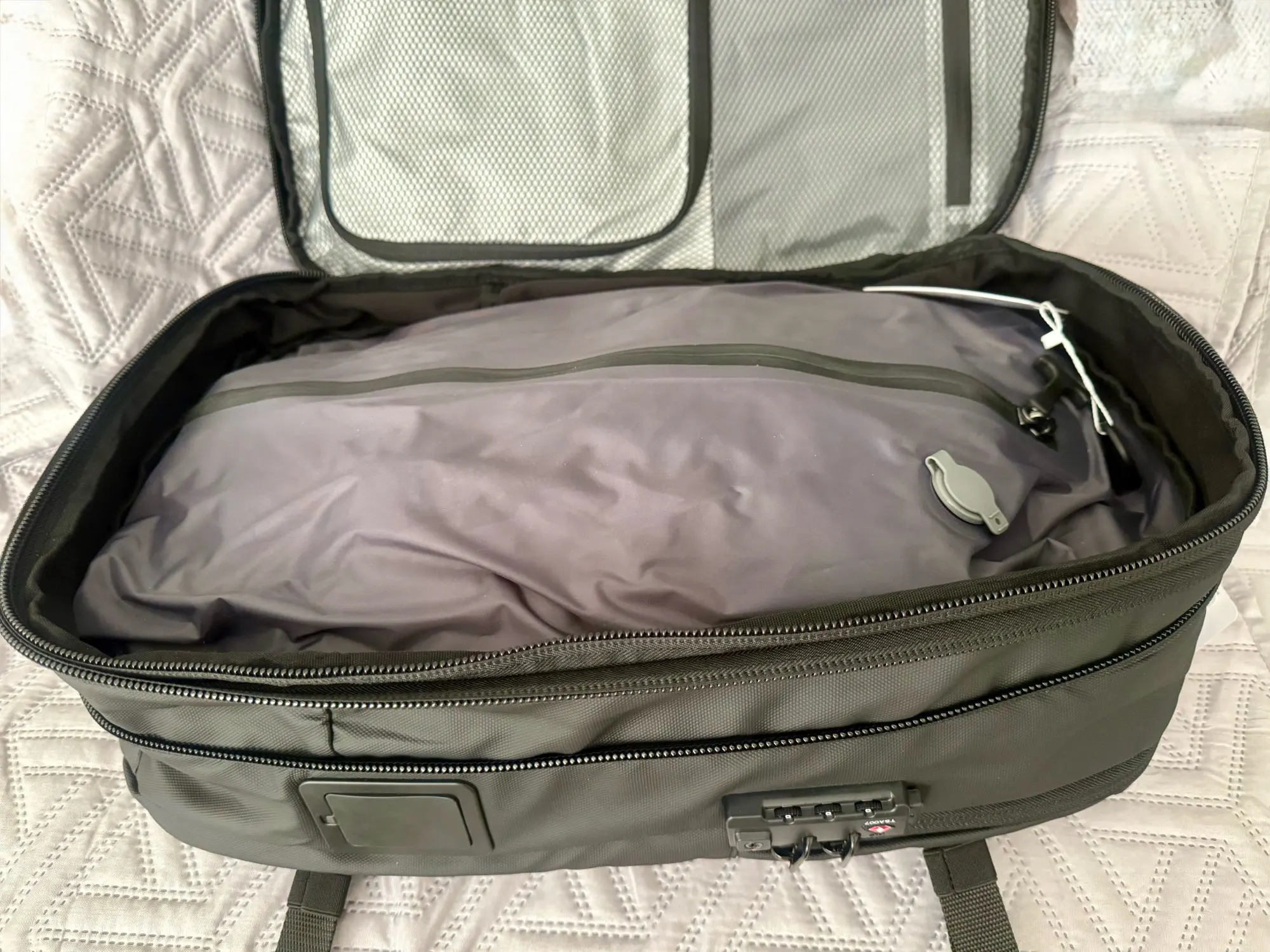 Fast delivery, very responsible seller, nice quality item. The bag is as described extendible and very useful for travel and has many compartments for different options. Very satisfy with, recommended. Thanks seller…