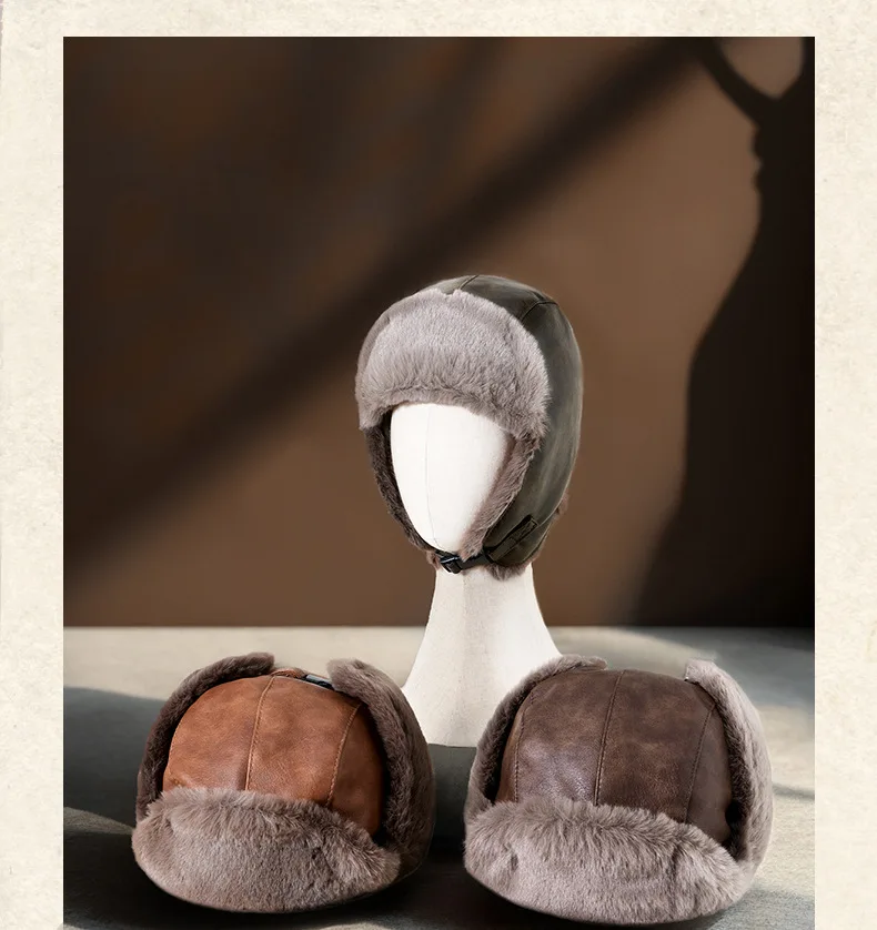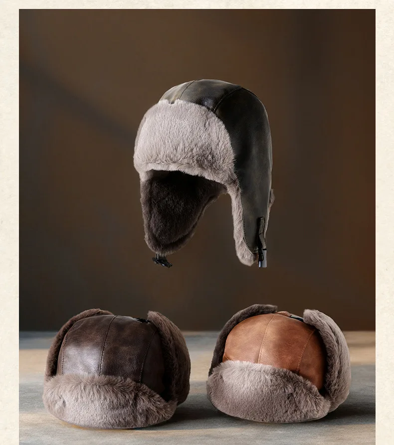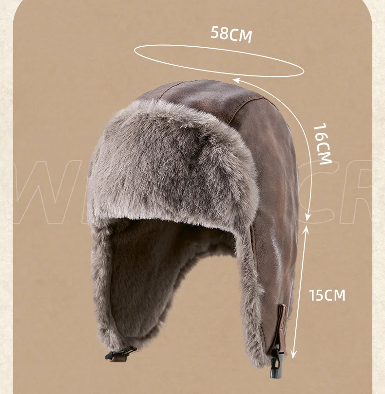 Men Winter Trapper Aviator Trooper Earflap Warm Russian Waterproof Ski Hat Women Bomber Cap Ear Protectors Dad Thick Fleece Hats
