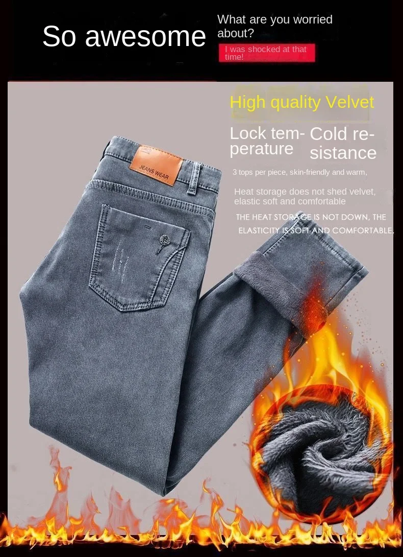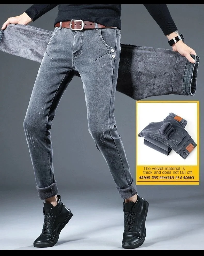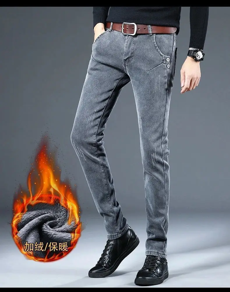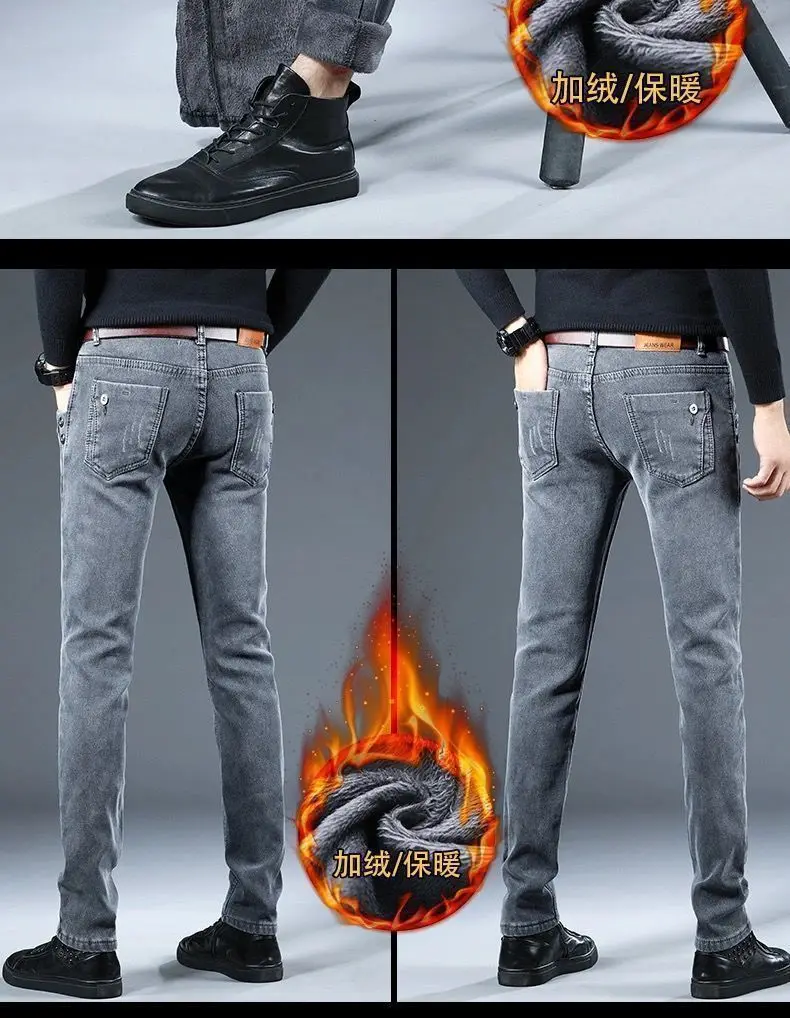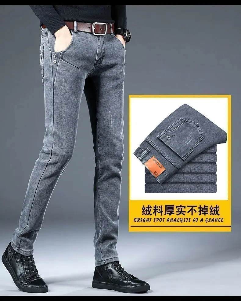 Plush, thicken, elastic, man, Jeans, male, slim, Autumn and winter, leisure time, keep warm, Versatile, trousers, thermal jeans men, warm fleece pants winter man, men’s winter jeans, men’s brushed jeans luxury, fleece men’s, Velvet pants, Korean fashion , pencil pants