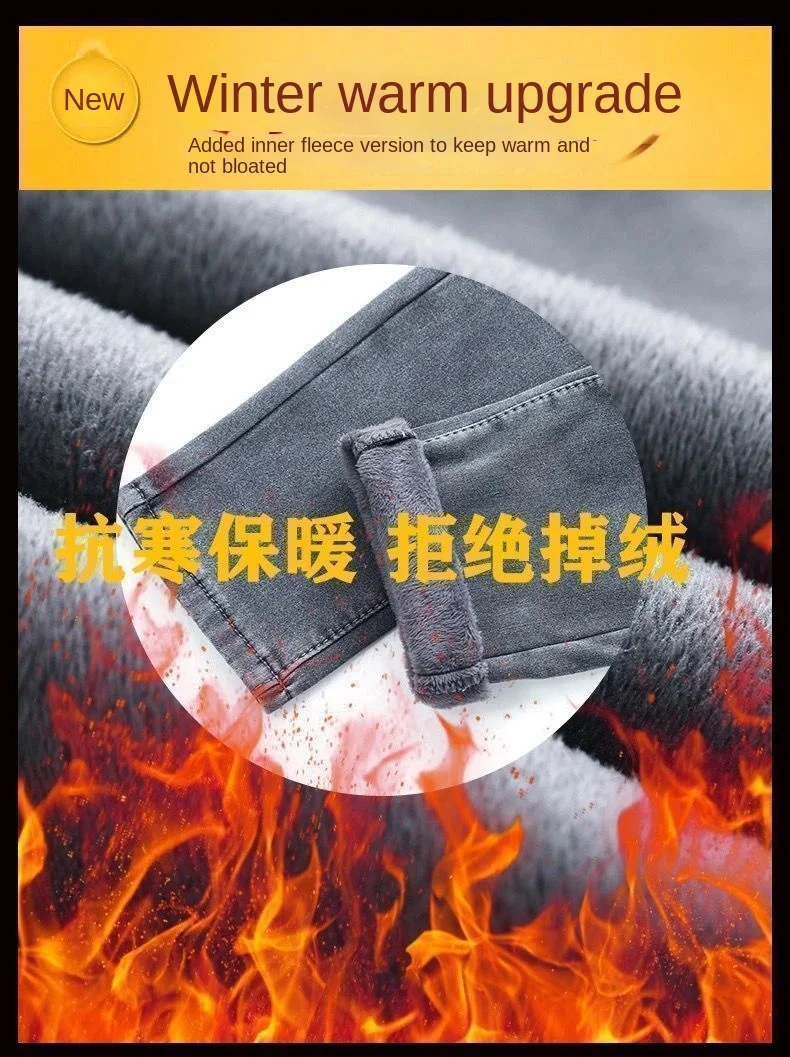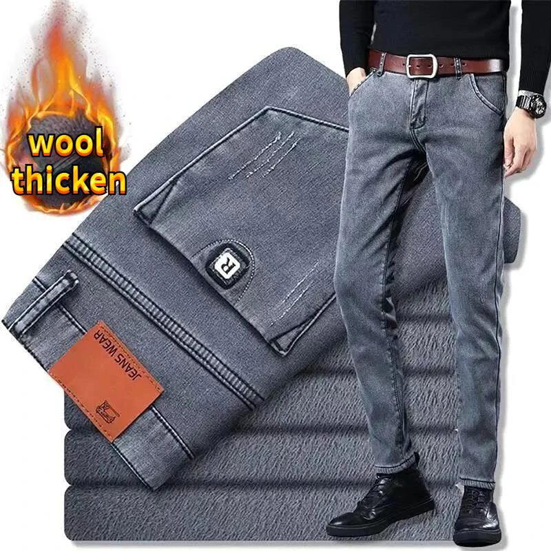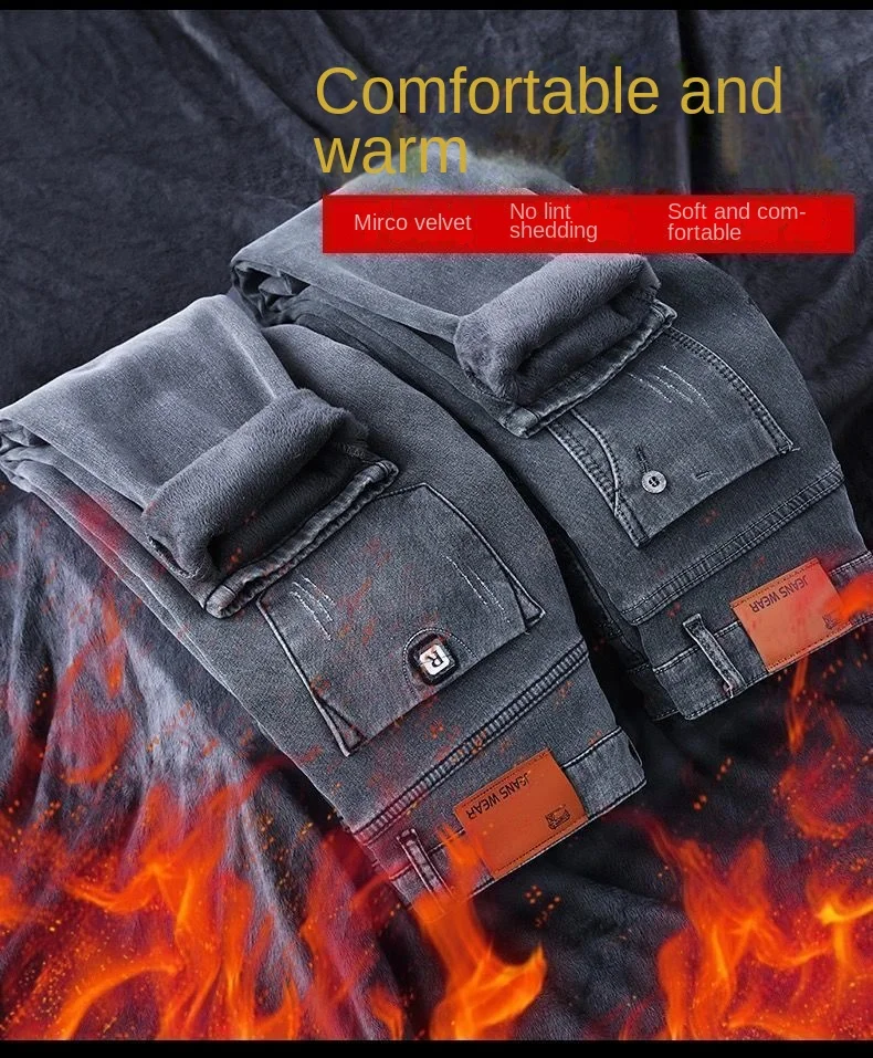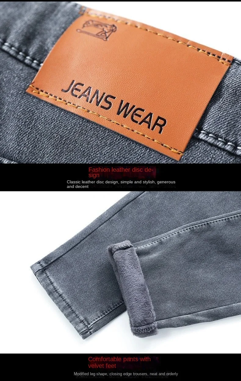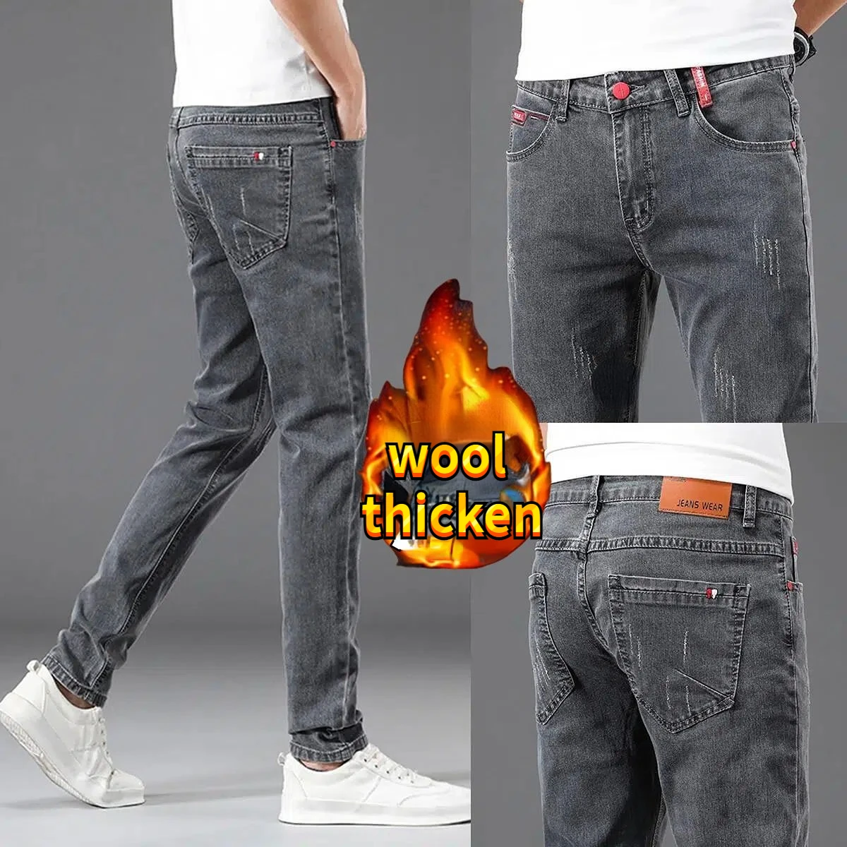 Plush, thicken, elastic, man, Jeans, male, slim, Autumn and winter, leisure time, keep warm, Versatile, trousers, thermal jeans men, warm fleece pants winter man, men’s winter jeans, men’s brushed jeans luxury, fleece men’s, Velvet pants, Korean fashion , pencil pants