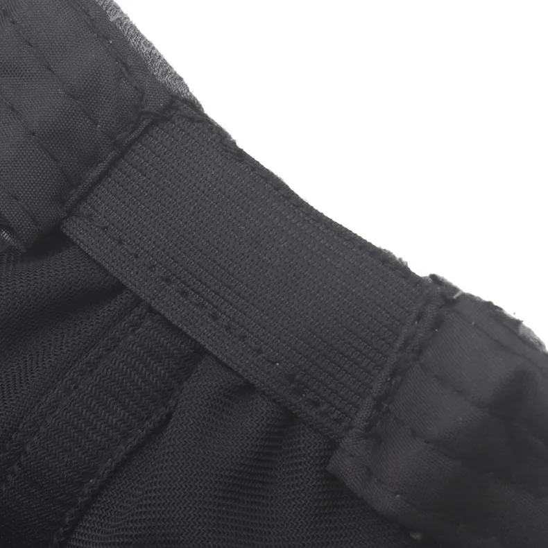Just as seen in the photo. Maybe the fabric is a bit thick for summer use but as long as it protects from the sun… It fits well on the head and the rubber doesn’t squeeze.