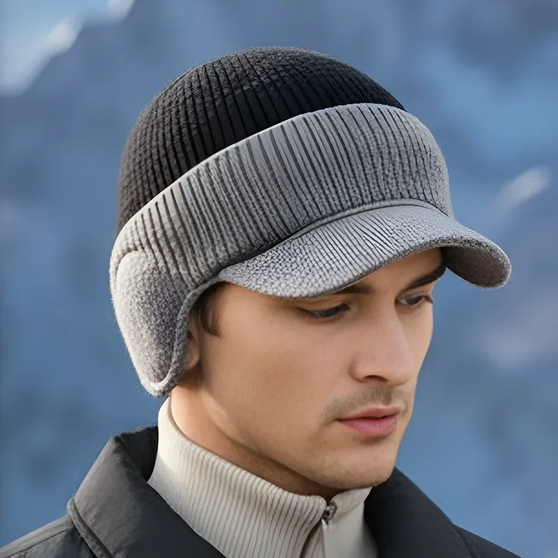 Men’s Knitted Duckbill Hat: Winter Warm Fleece Lined, Black, Large Head Circumference