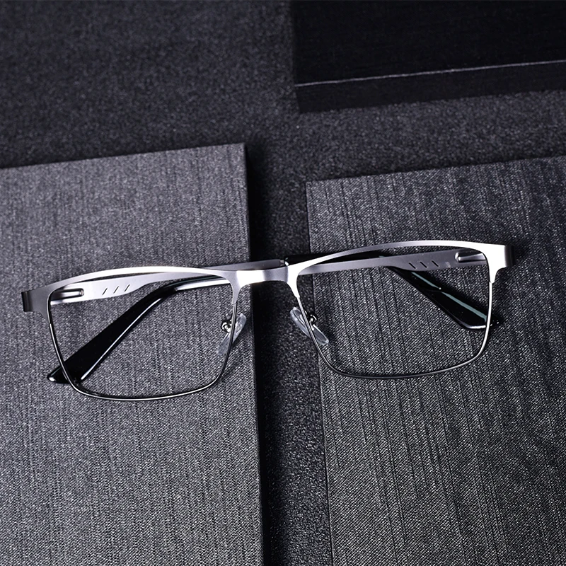 Mens Metal Reading Glasses Frame High Quality Square Presbyopic Spectacles Eyeglasses With Blue Light Lens+75+125+175+225+275