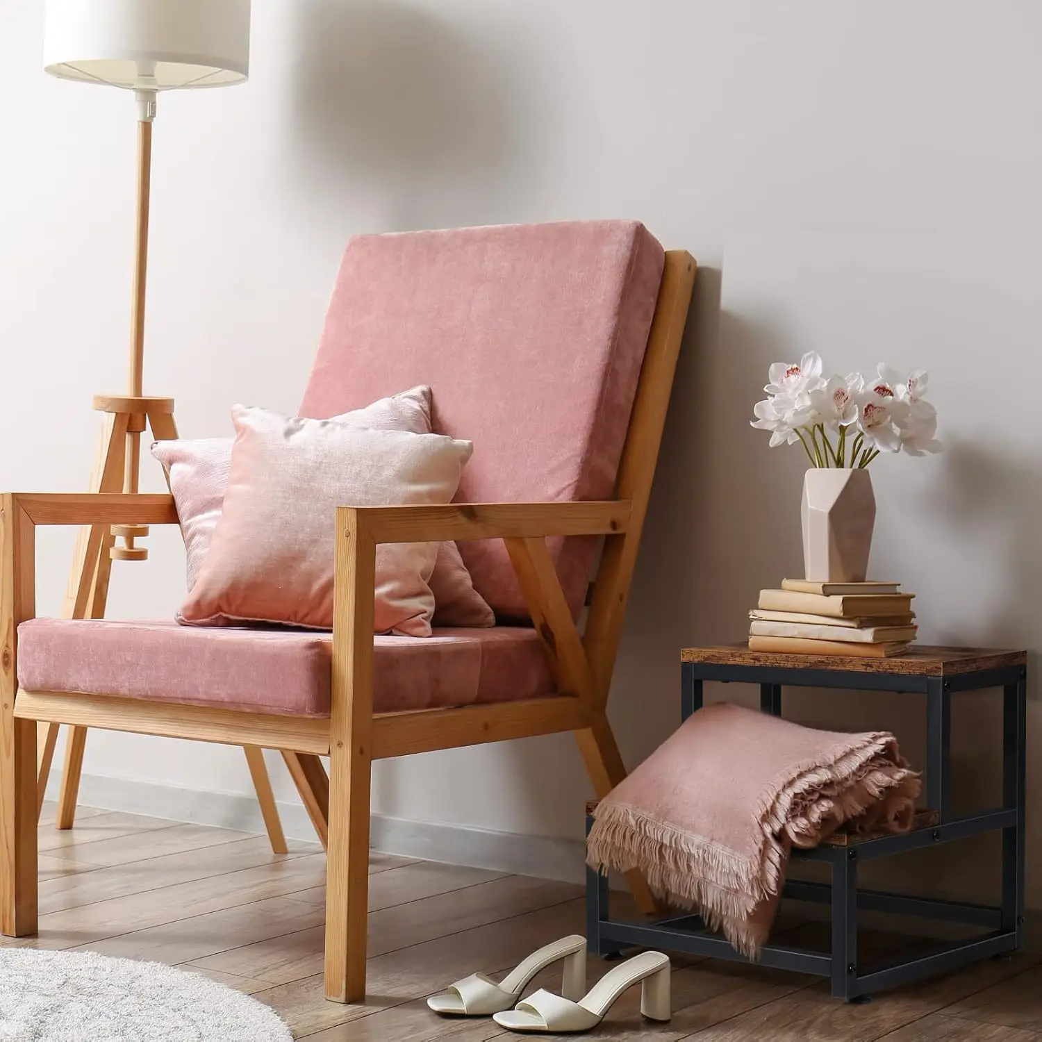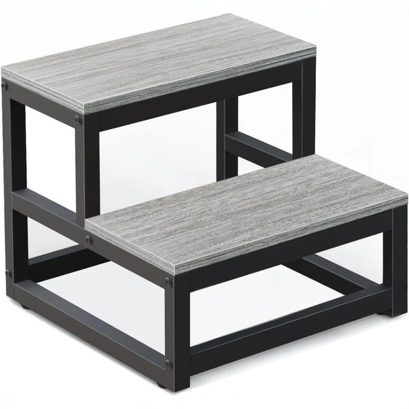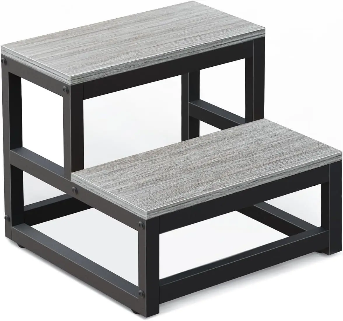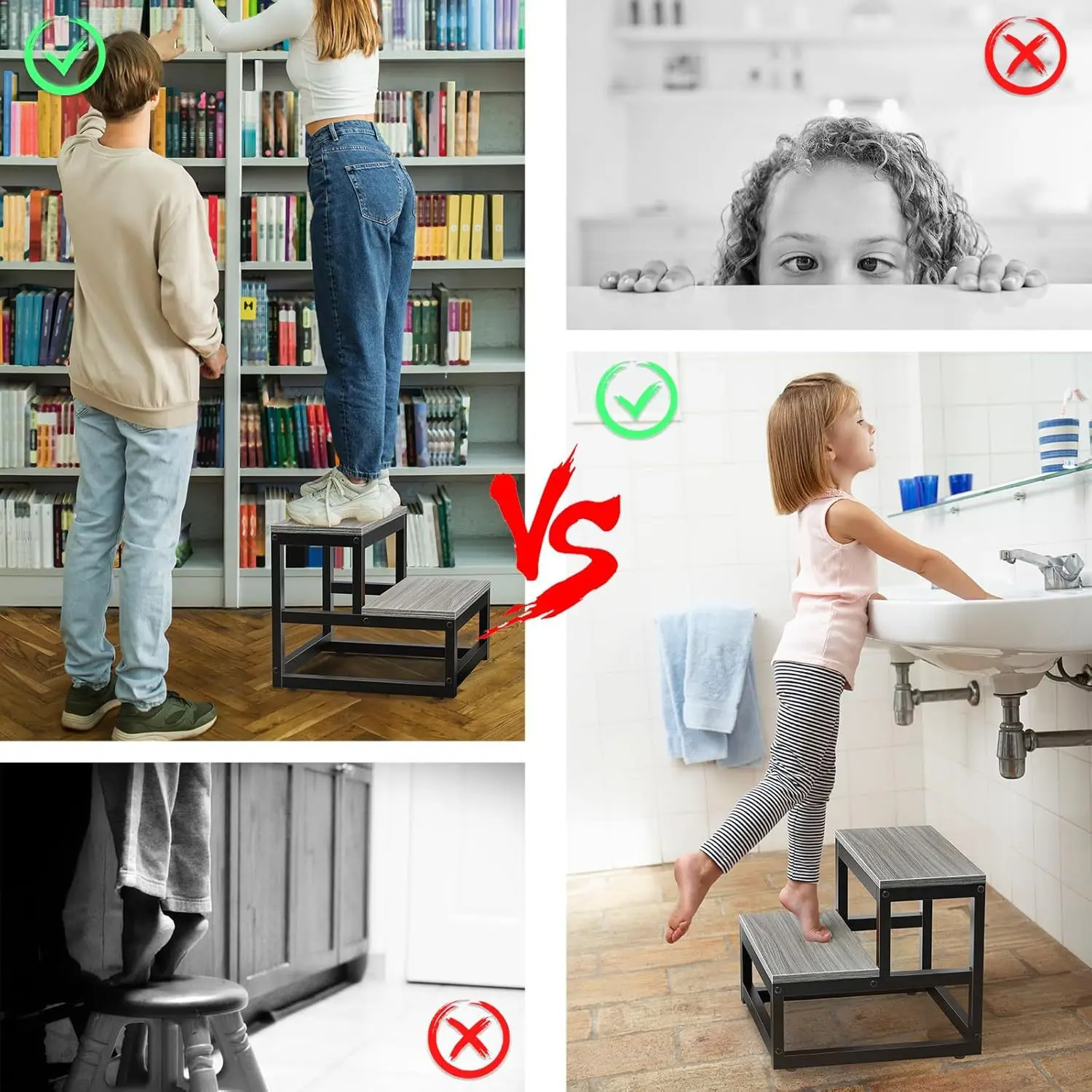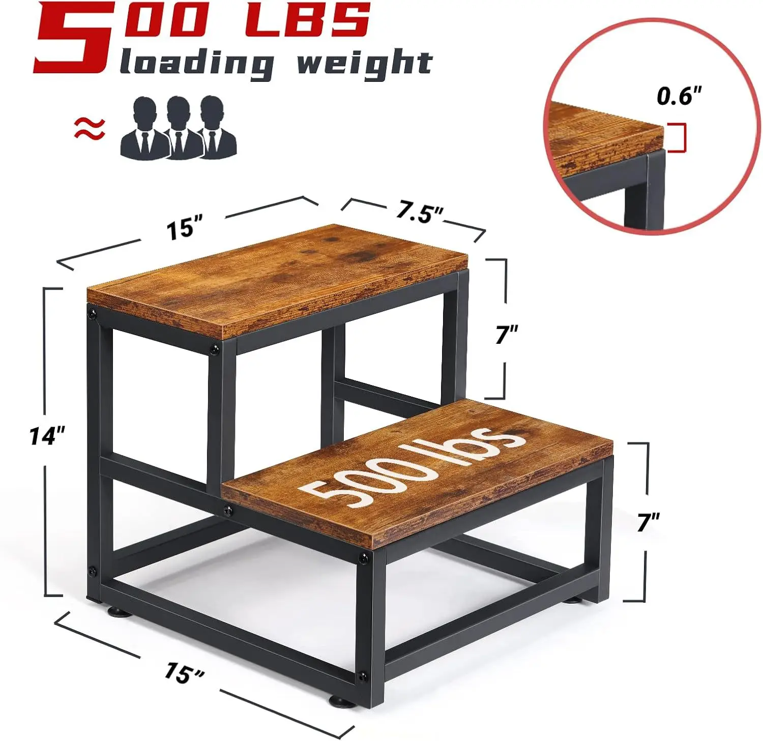 Metal Iron & Wood 2-Step Stool Sturdy Rise Footstool for Kids Household Multi-function Ladder Entryway Shoe Stool & Organizer