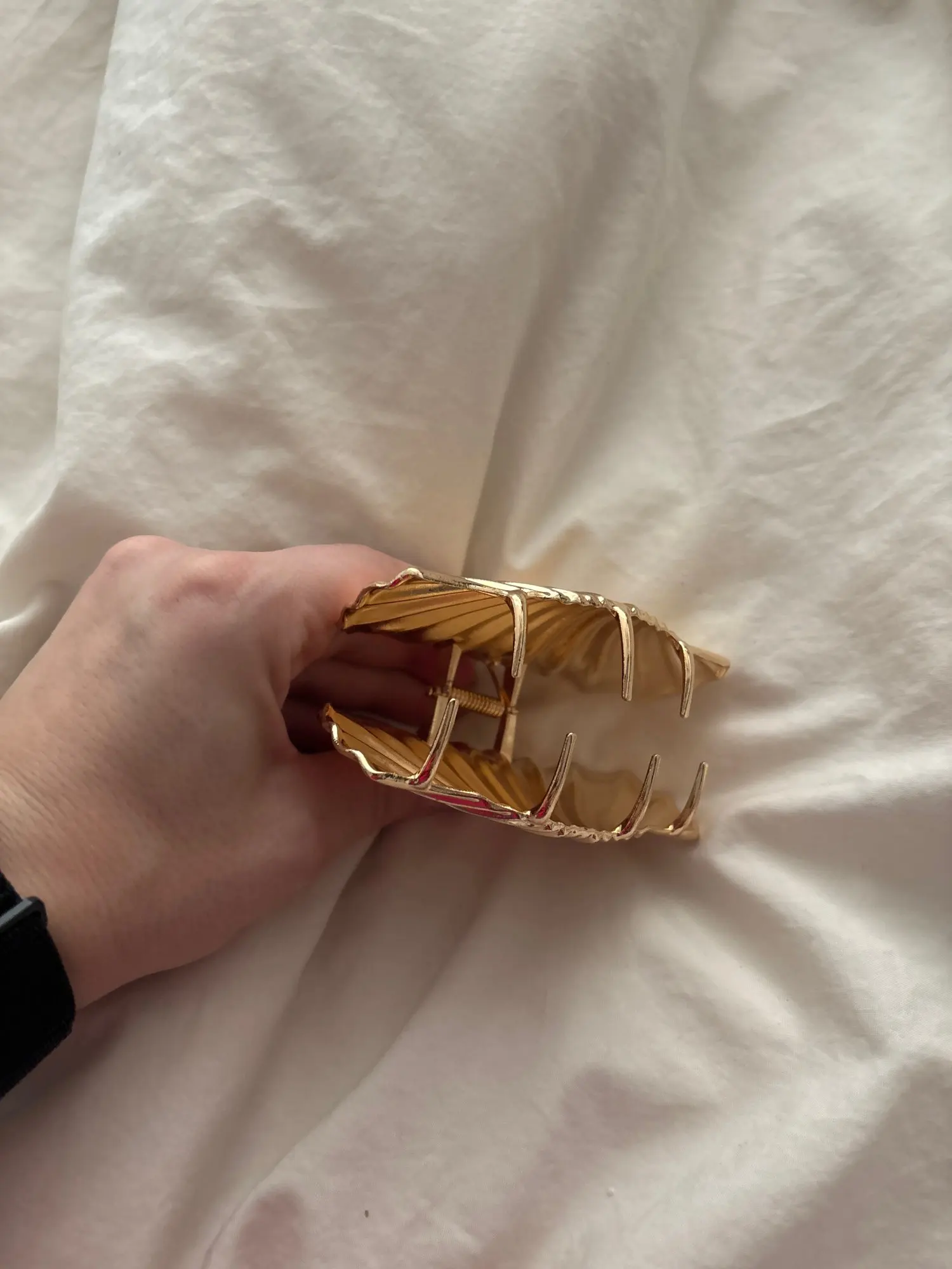A good hair clip, metal, not very heavy but not light either! 👌👍. The size is exactly what I wanted! Holds hair well! Thanks to the seller! I will order other items from him!