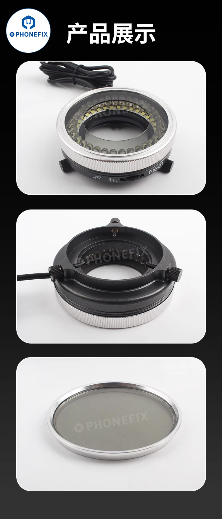 Enhance your microscopic work with the iFixes Polarized Ring Light, featuring 35pcs DIP LED and 35pcs SMD LEDs. Ideal for lab professionals and enthusiasts seeking high-quality microscope illuminators and lights.