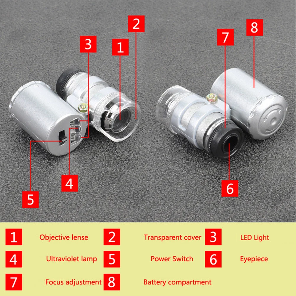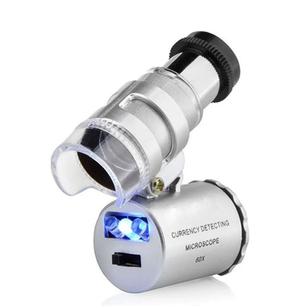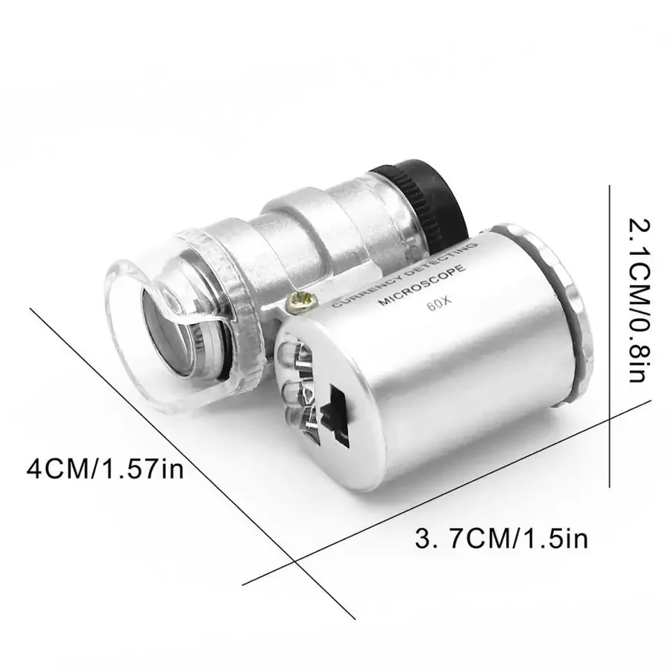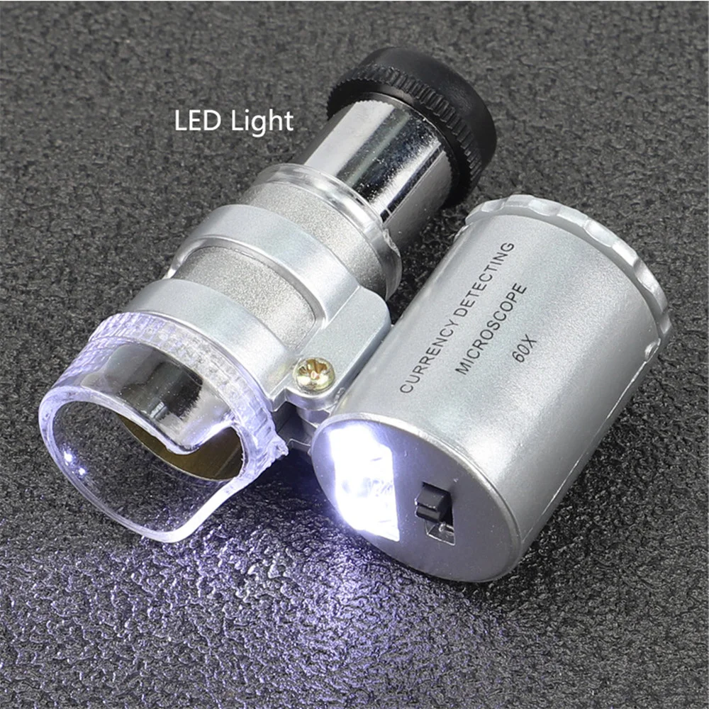 Mini 60X Microscope with LED Light Handheld High Definition Pocket Jewelry Loupe Portable Currency Detecting Small Magnifier