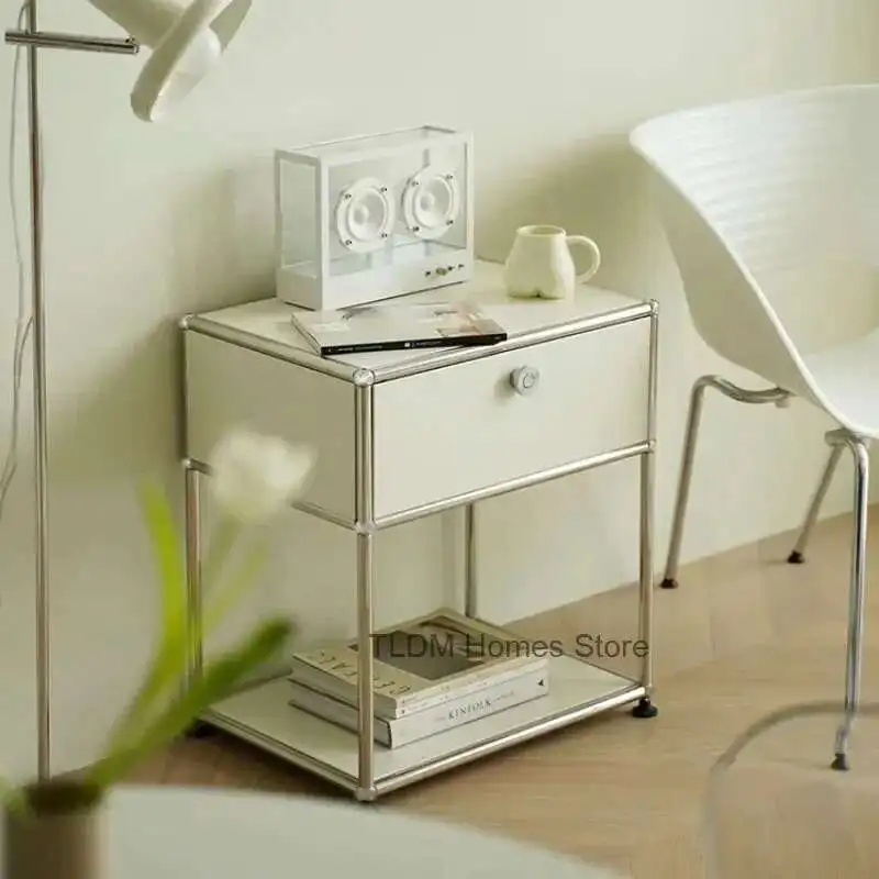 Modern Minimalist Nightstand Medieval Bedroom Furniture Module Storage TV Side Cabinet Stainless Steel Frame Bedside Table